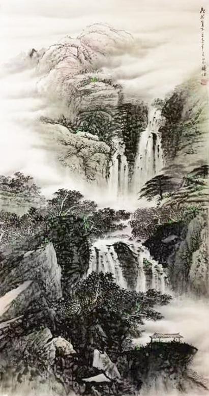 2016年参加新加坡华人艺术家协会举办的画展,山水作品《临泉观瀑》获得了金奖。