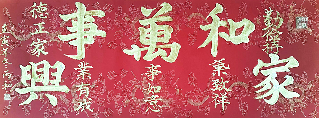 幼承庭训,酷爱书法绘画,一直将书画艺术作为精神生活的一部分。多年以来,坚持不懈,临池不辍。跟随北京书协李长河老师学习隶书曹全碑乙瑛碑,魏碑始平公,张猛龙数十年,楷书受中书协周伯勋老师指导学习颜勤礼和多宝塔碑,行书以王,赵等古人为范,常年临习胆巴碑,洛神赋,圣教序,十七帖等古碑帖。不习江湖,不求索怪,放纵予自然。所书作品碑帖融合,兼容并蓄,博采众长,既有魏碑颜体的庄重雄浑大气,又有二王的飘逸妍美秀丽。