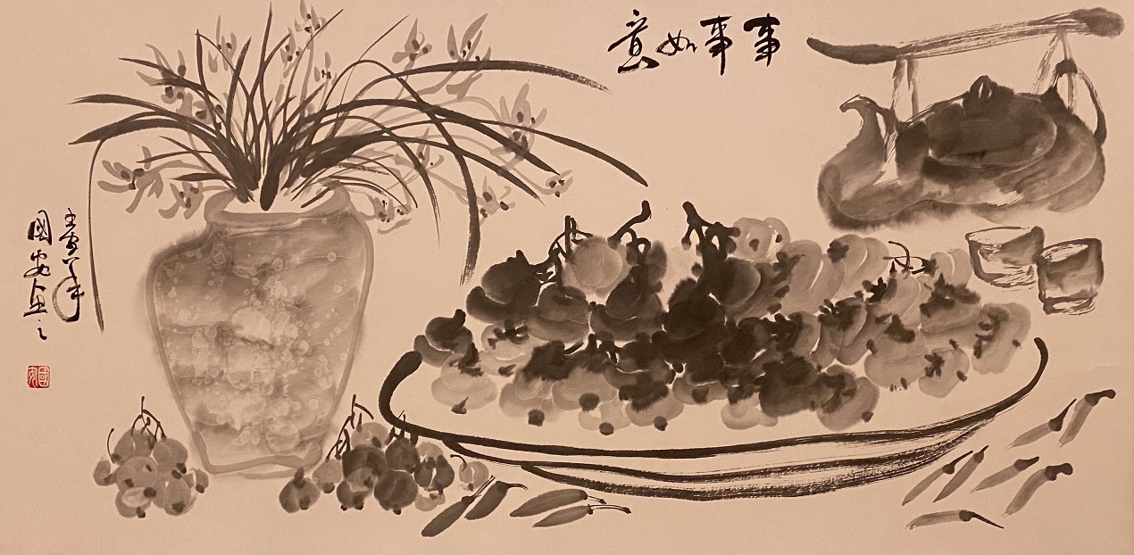 近年来应邀在天津、深圳、广州、西安、郑州、长沙、新疆、南京等地举办画展。 回望之,国安潜心山水画和花鸟画创作,初始循法入境,运转变通;进而造化在手,尺图自出;今则在倾力追随时代,创意为上,当是溶法于精髓,投之以生命,善哉,其情者也。有评家言,观其之画作,可见其涉入之艰辛,追求之执着,探索之收获,大有前程。但丹青之境无限,当有更崇高之奔往。