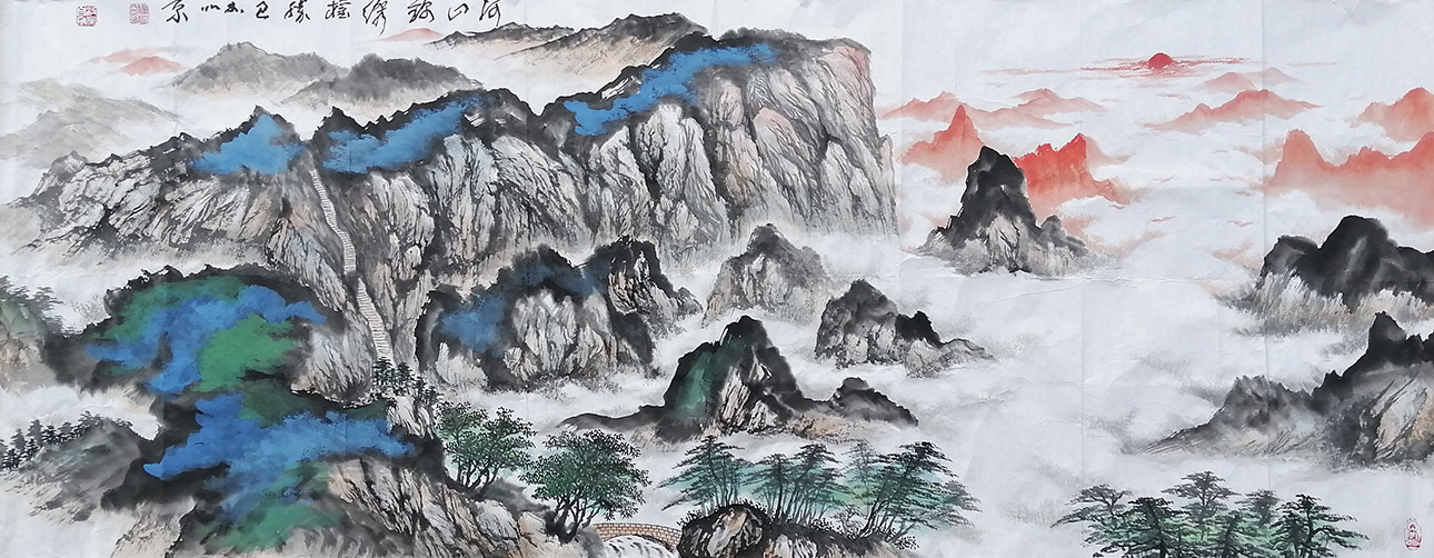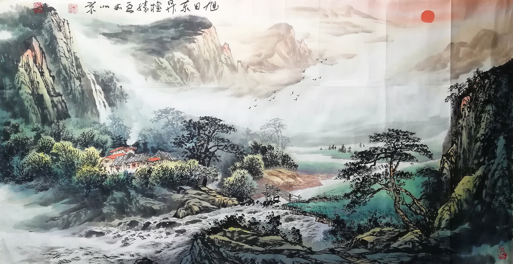 2019年11月2日.庆祝建国70周年.在北京吴东魁艺术馆举办个人书画展,展览期间作品.六尺山水画.旭日东升被中国收藏家协会收藏,六尺山水画远源流长.被中华慈善总会收藏。