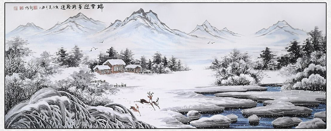 作品简述:山水作品《寒林冰雪系列》,继2016年G20峰会主会场收藏武如广的同名作品后,武如广再次创作的同题材巨作《江山永固》,引起了收藏界的广泛关注,该作品最终再次以个人破百万记录价成交。
