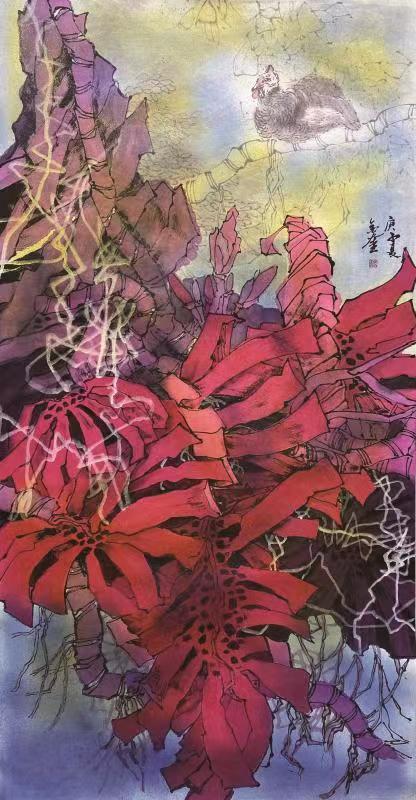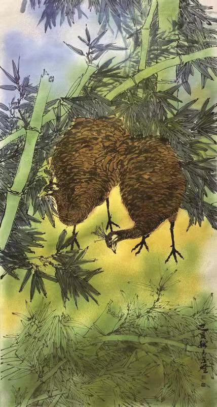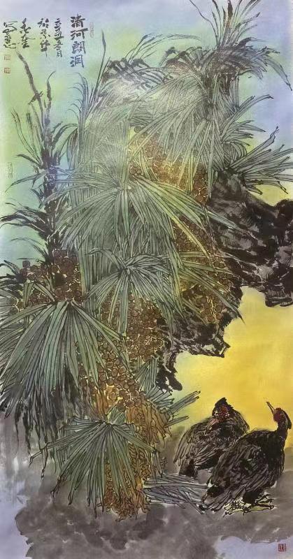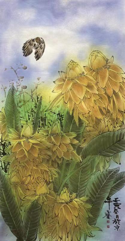 他经历了从传统型到现代型的创造性转化过程,集油画、水墨、水彩、粉彩等于一体,在这个过程中,从自身出发,做了一些观念、媒材与技法上的尝试,也由此形成个人风格为代表的花鸟画风。在这些不同画风的实践者中,袁金奎是近些年涌现出来的成绩斐然的花鸟画家。他的作品既得传统工笔画的精致明丽,又有文人写意画的雅逸清疏,同时又不失苍莽雄俊的个人风格,在同一风格类型的作品中显得尤为突出。