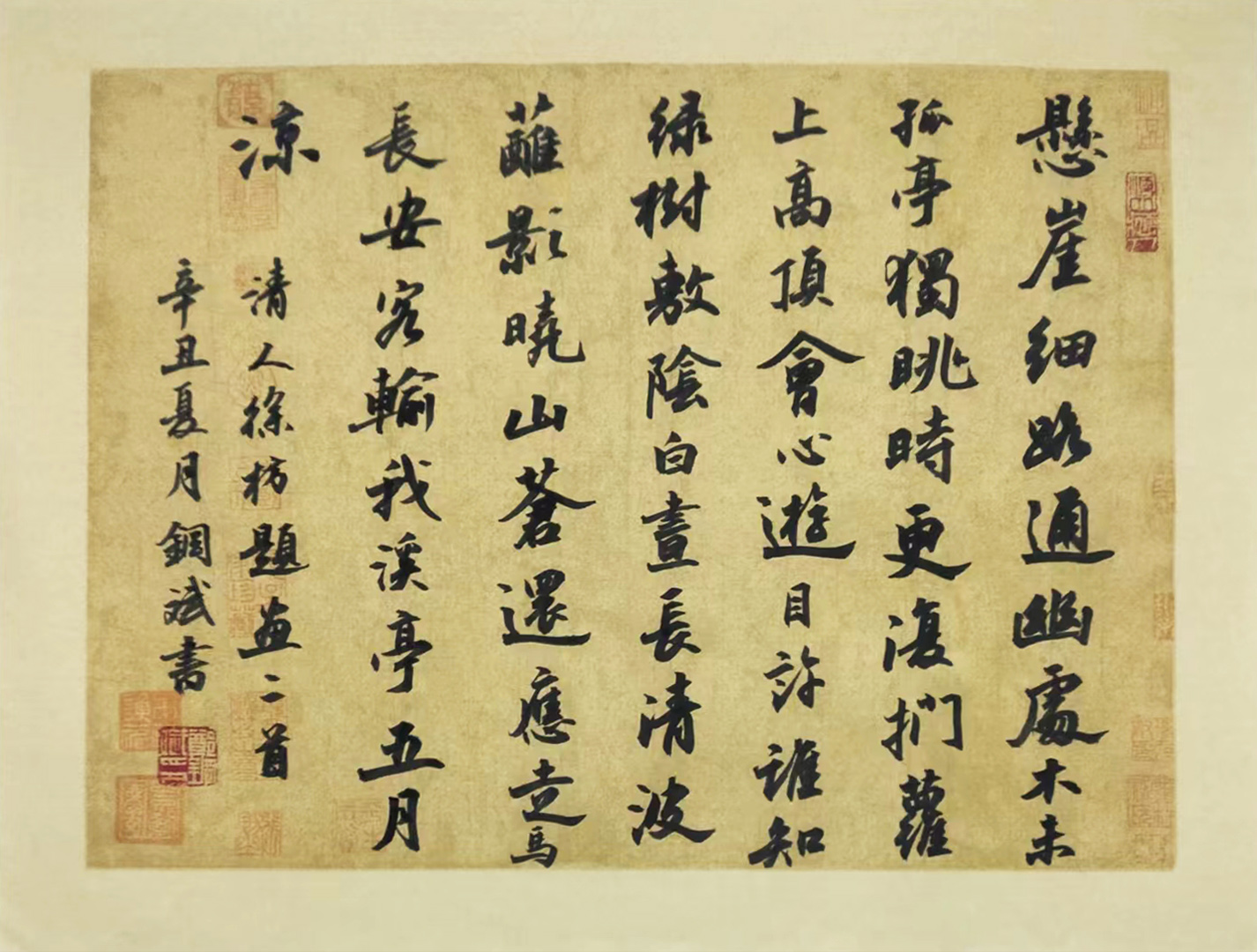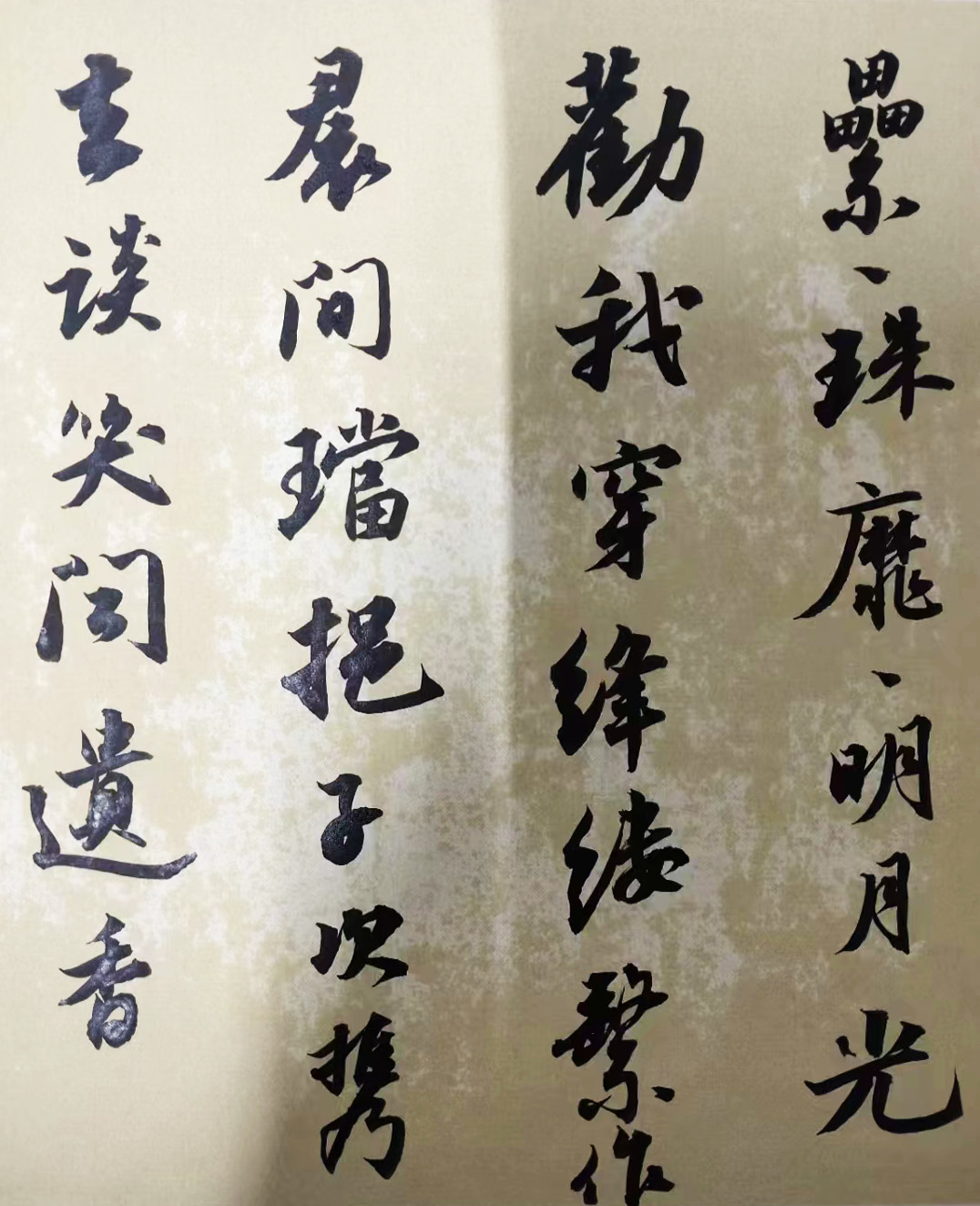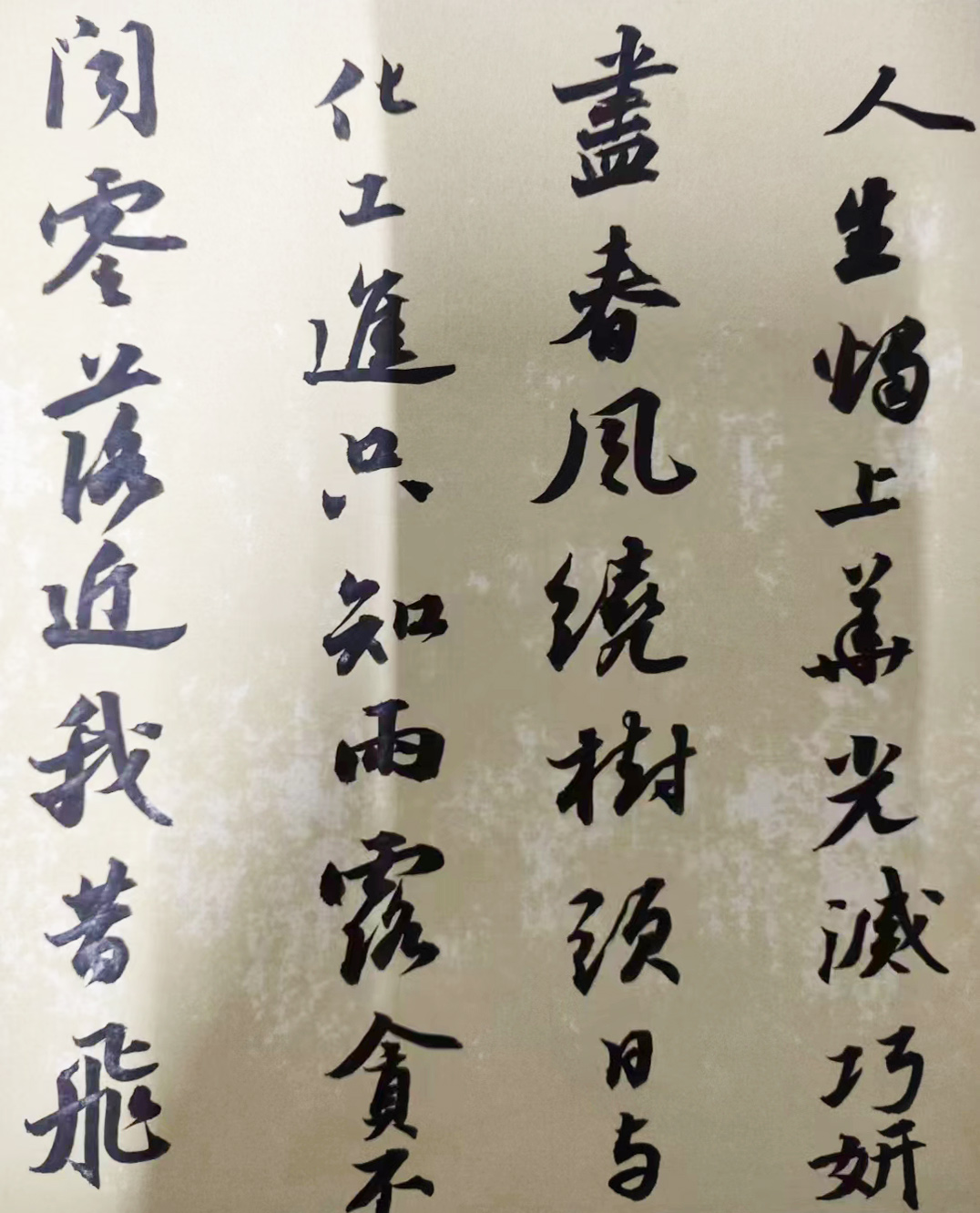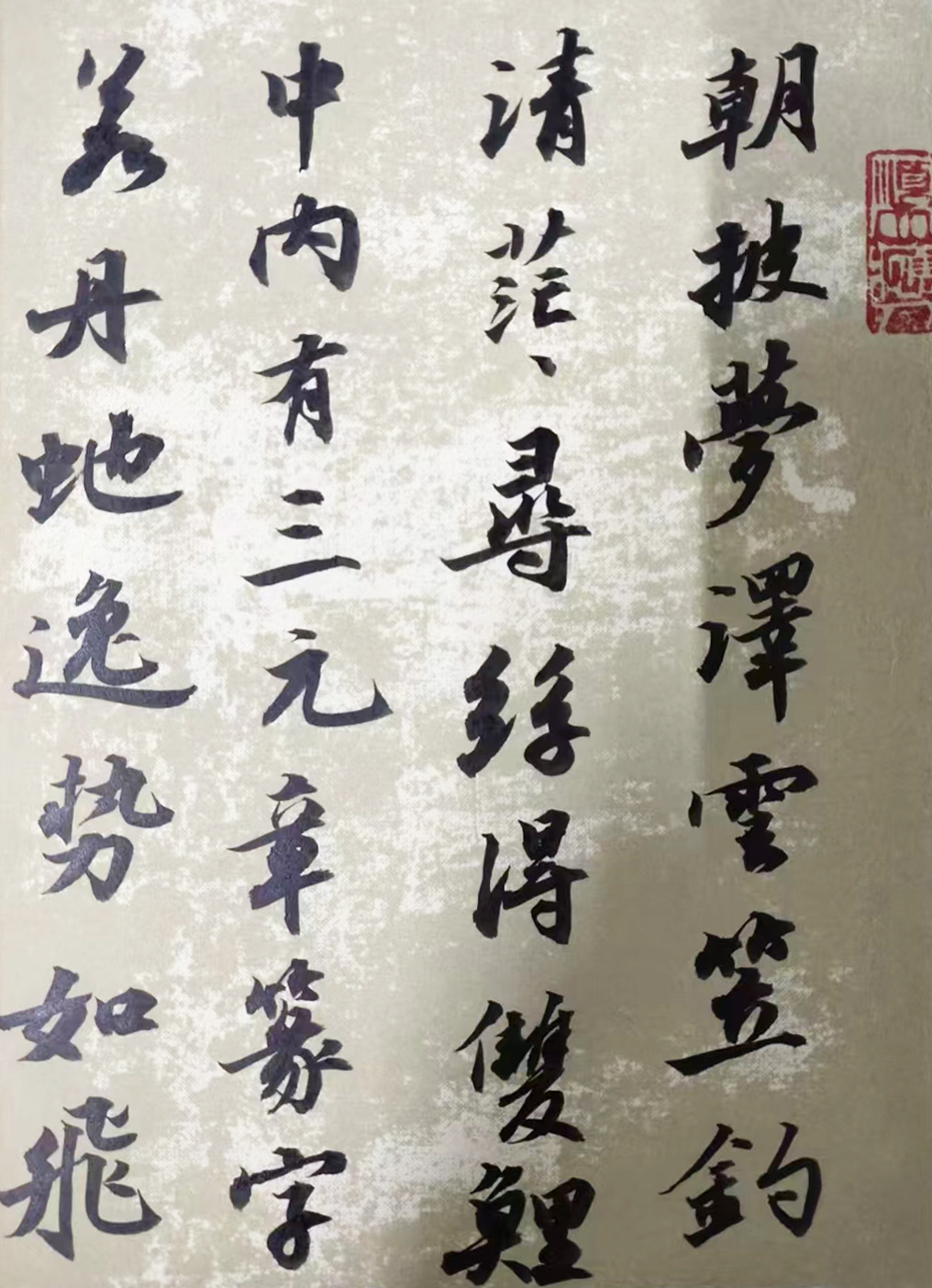 首赏先生行书,其行书笔墨看似随性,实则是以小洒而彰大逸,以小潇而显优雅也!笔笔线条饱满深厚,运笔行笔铿锵有力,由此构之于形,行书可尽显豪迈之情,再以美诗美句为本,通幅作品则更显诗情妙意也!