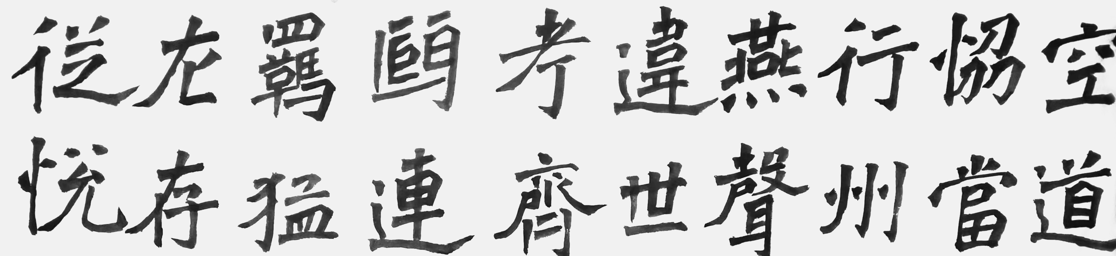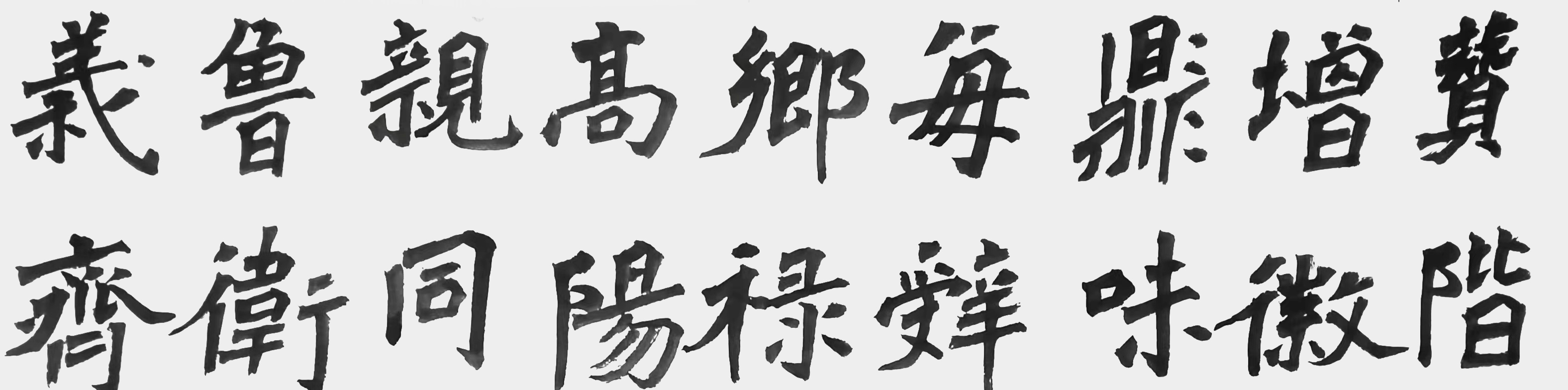 在楷书上,先生取法魏碑,更是深谙碑之要诀,素纸方寸间,碑之情怀极其浓厚!而如此师古纳今的魏碑创作道路,也是为其作品带来了与众不同的风格,作中碑体,笔力雄健,笔线洞达,一笔一划尽显时代韵味!整个字形更是外柔内刚,拙劲自如,是谓具雄强而不失法度,具风骨而不失古拙也。