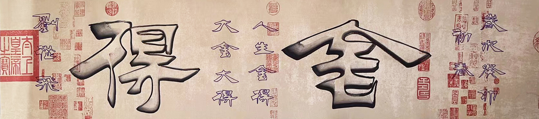 刘从飞先生自幼受艺术熏陶,喜爱书画,也展现出艺术天赋,对于观察事物方面有着敏感的捕捉力,书画皆为冠绝。书法师承二王,后临颜柳欧赵之精髓,几十年如一曰,临池不缀,终有所成。作品字迹风神洒落,入木三分;章法疏放妍妙,天资神纵;观之情驰忧游,气势贯虹,大有王羲之风骨!刘从飞先生研习双钩四十多年,独创了一笔双钩写法以及双钩立体浮雕的新写法,至今无人超越。