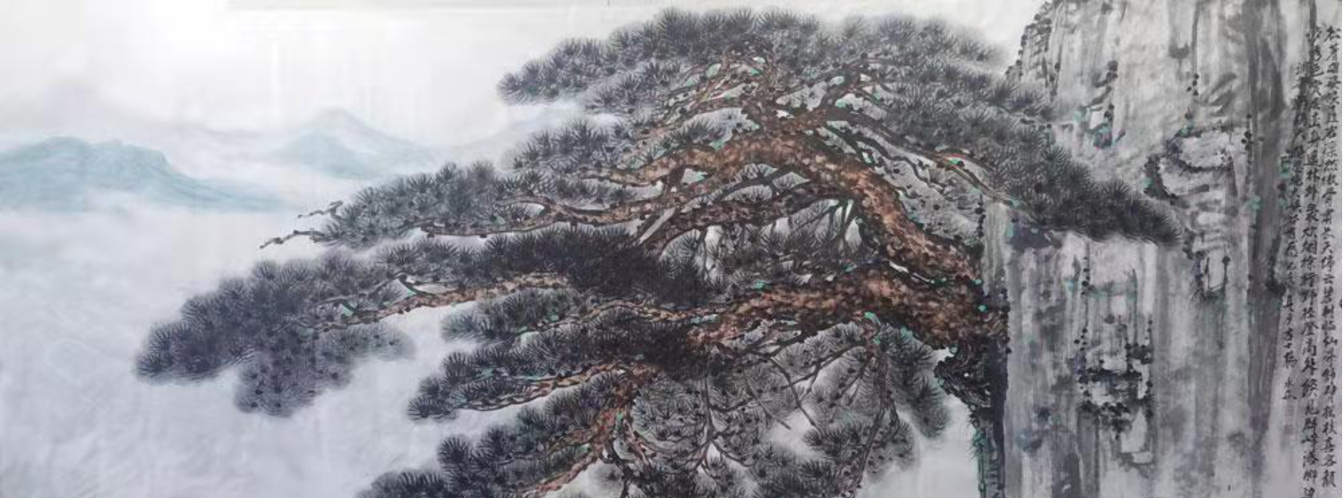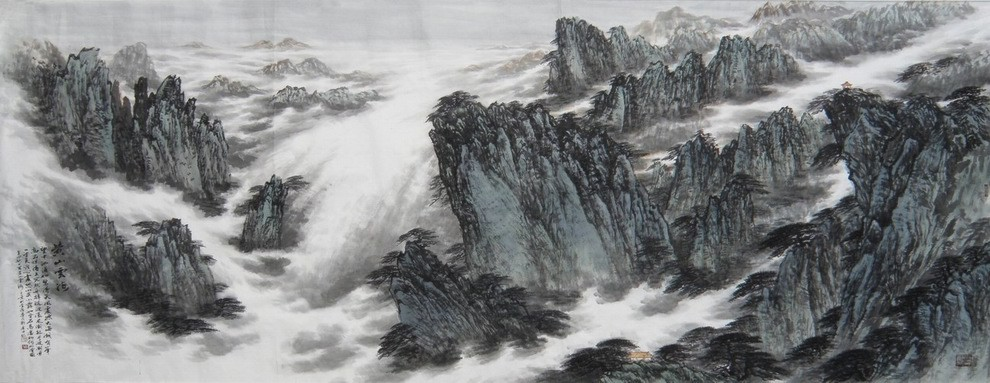 2018年,作品《云崖沧海》被驻新加坡大使馆悬挂