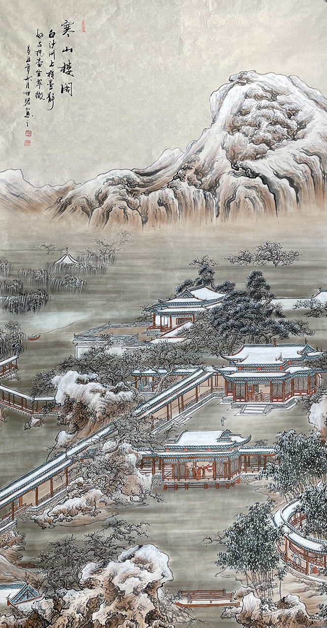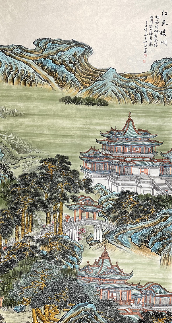 吴世珺师从何家英先生,毕业于天津美术学院,早期作品主要从张择端《清明上河图》中吸取灵感,后期师从国画大师范扬先生,逐渐对人物,山水有了自己独特的创作方式,形成自己独特的界画山水风格,开创一代新的山水创作门派。