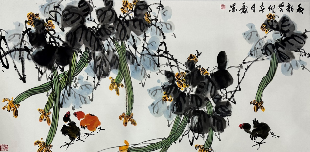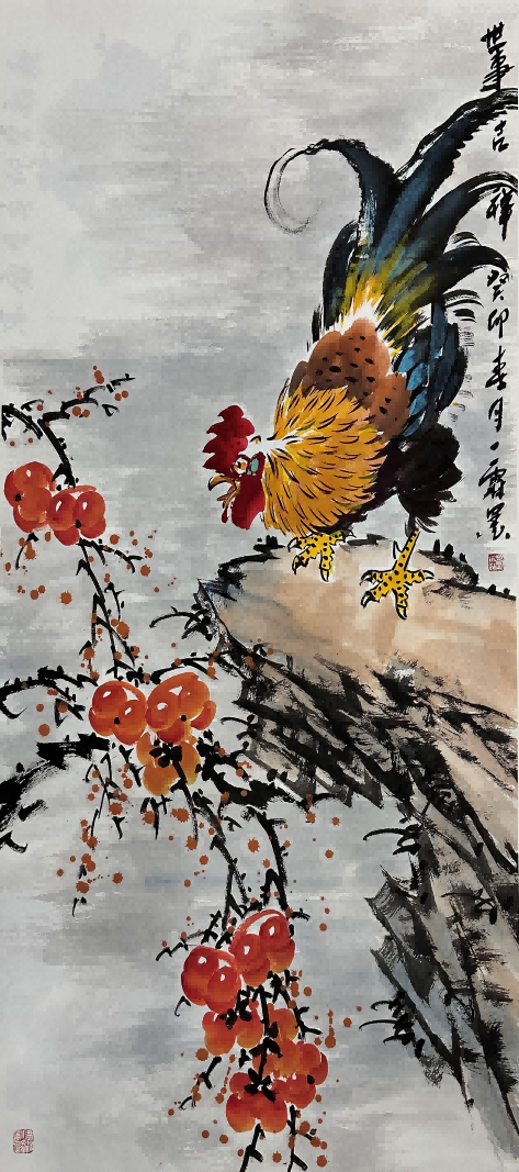 其学术性作品为松牡丹梅兰菊鱼鸡鹰系列,笔法独具创新自成风格,深得专家好评,为第五届全国青年中国画展银奖得主。被中国美术报推荐为当代具有潜力的十名画家之一。