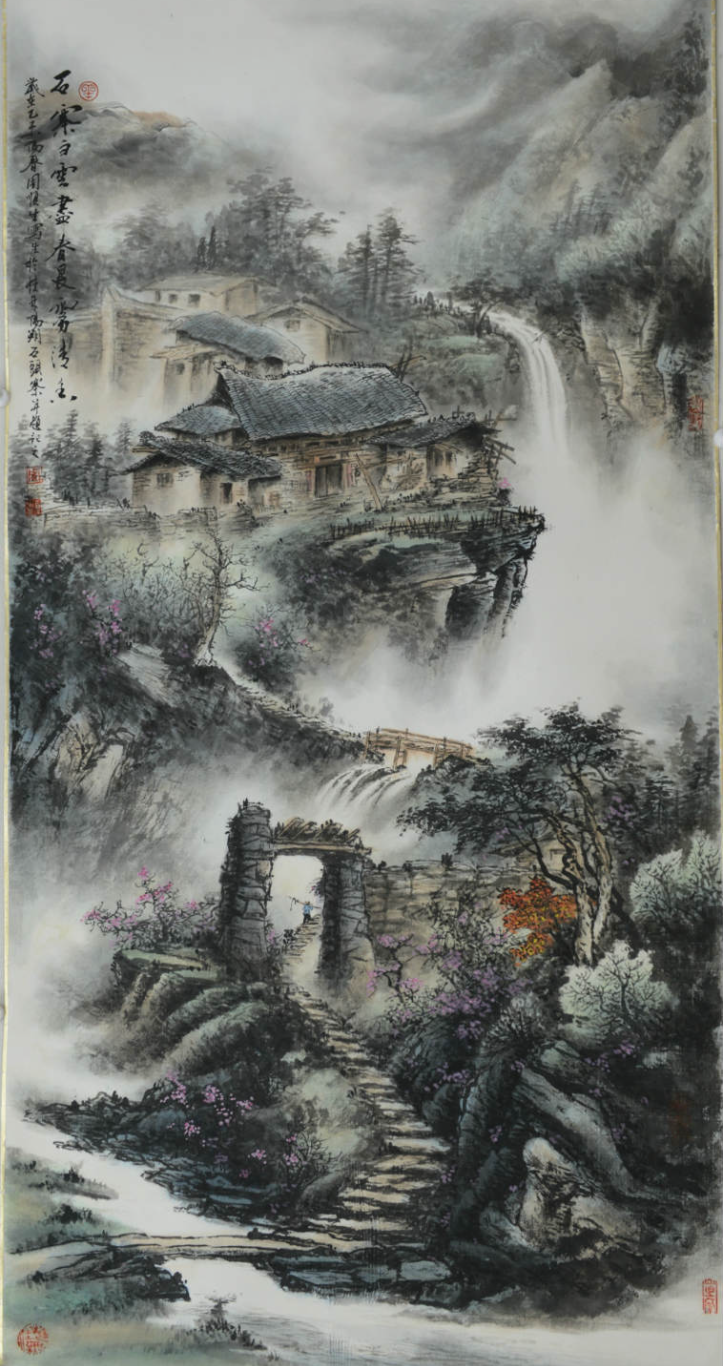 1960年2月庆祝中缅两国签订边境和平条约创作《江山多娇》,后被悬挂于大会堂。