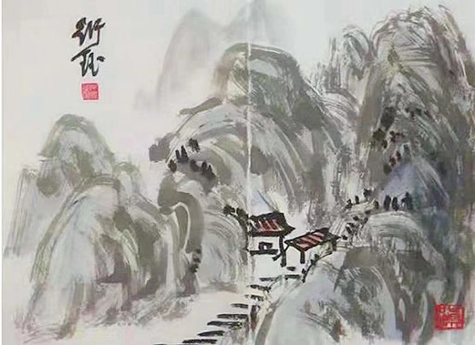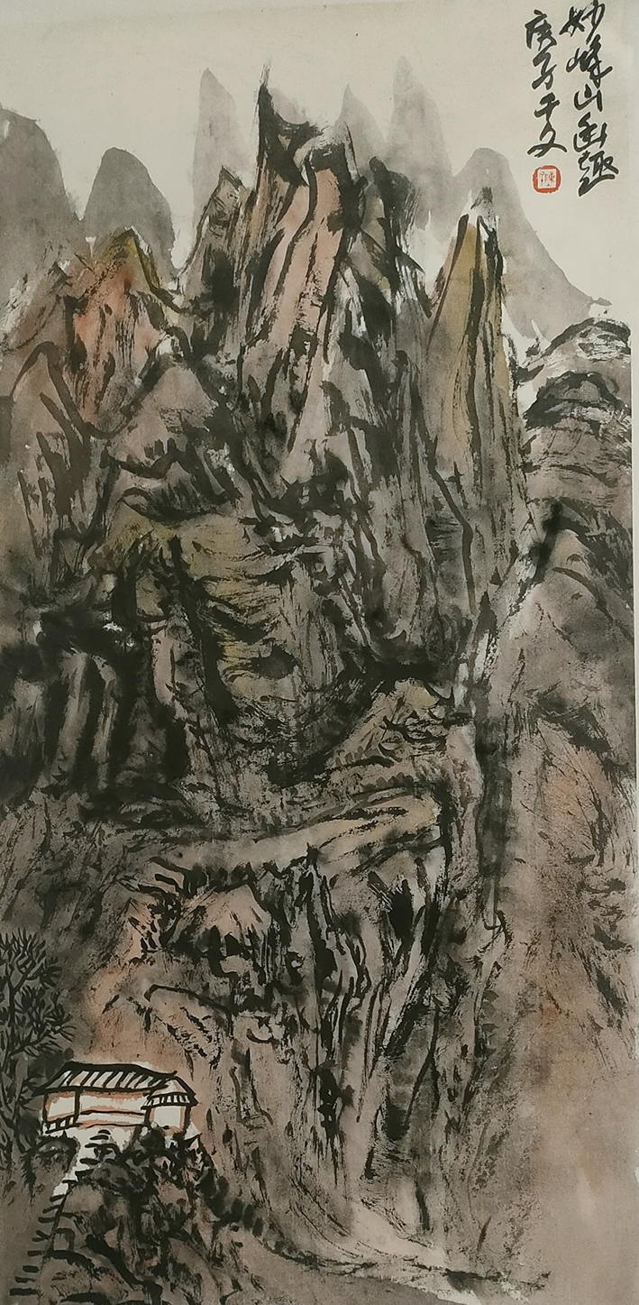 他独创“狂草皴”山水画法,以草书笔法入画,线条遒劲,如同钢铸铁打一般,并广泛吸收金石气与宾公特征,但画风又与之不同,在笔墨语言上形成了一套独特的章法。与当代雷同的风格形成强烈的对比。其作品山势雄厚,体面严整,有俨然峻拔之势;侧近观之,点画纵肆,墨色温厚,有温润隽永之情,“望之俨然,即之也温”,体现出了画家“胸中脱去尘浊,自然丘壑内营”的艺术境界。