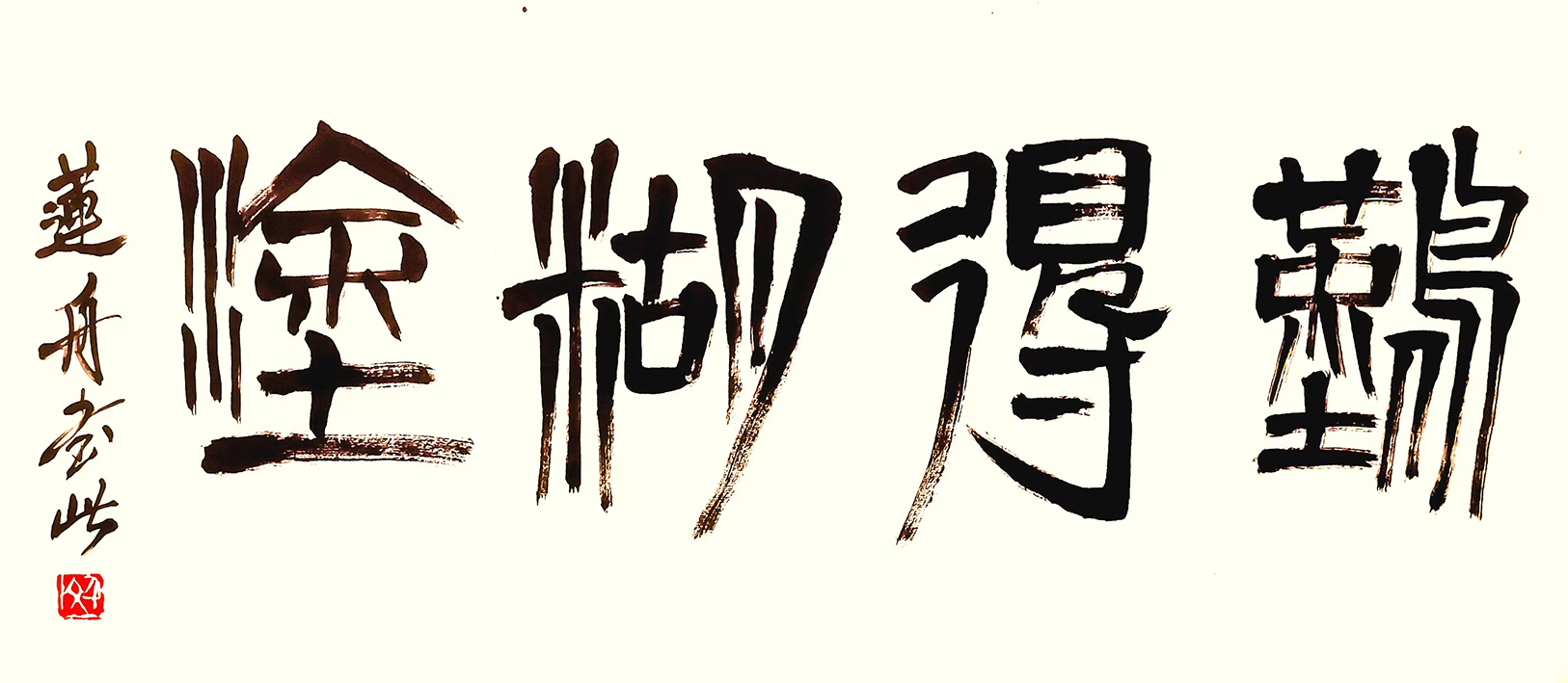 他书法的独到见解,是个人认识和对书法、佛学的碰撞和融合。似楷非楷,即楷即隶,一如佛法:非空非有,即空即有。非空是自性存在的意思;非有,自性虽然存在却无具体的形象;即空即有是看到一切法如幻则见自性。存在的自性是绝对的不生不灭、不垢不净、不增不减。于字中亦可体悟佛法,他的书法正是他一生追求心灵超越和人格圆融境界的写照。当今千人一面的书法现象中独树一帜。