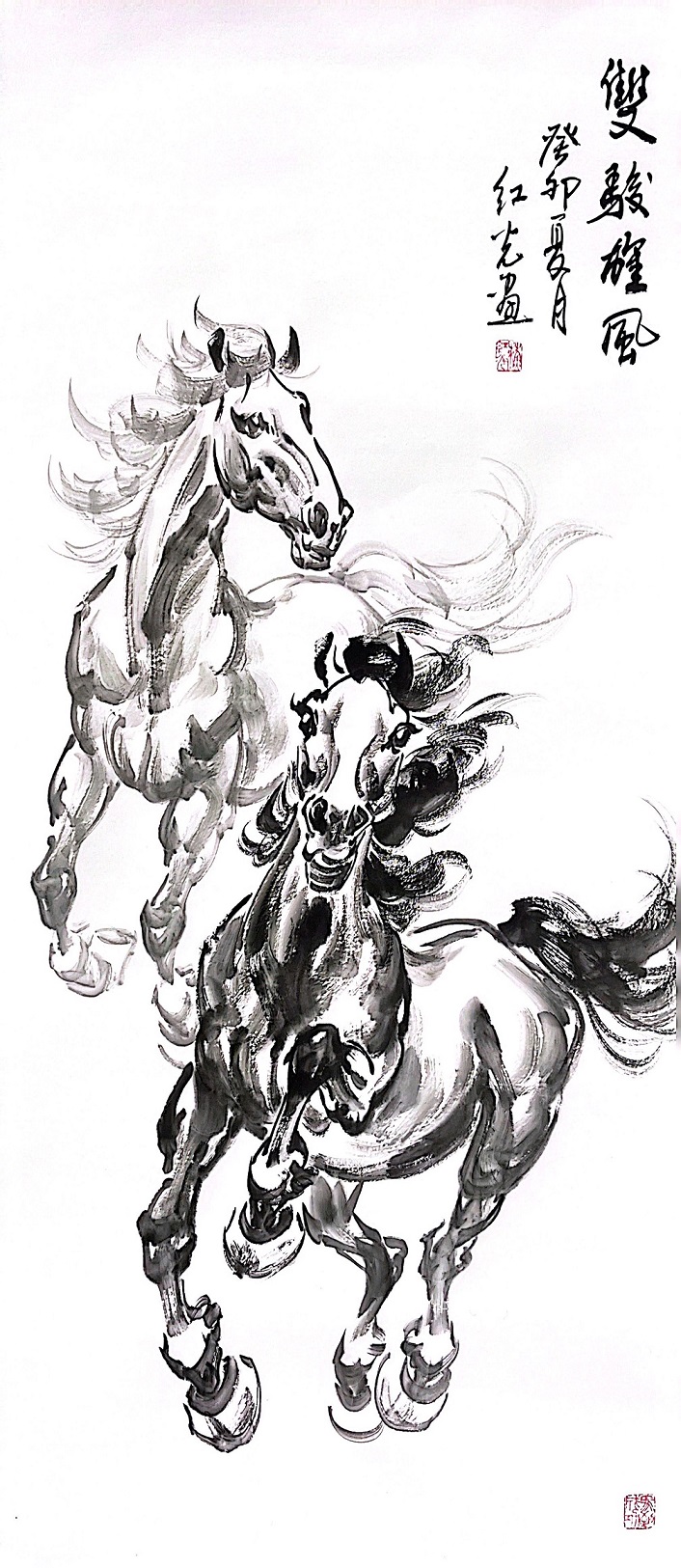 苏红光先生得国画作品参加重大拍卖十余次,2019年其国画类市场润格50000元人民币/平尺,被誉为近代继徐悲鸿后极具升值空间的画马大师。