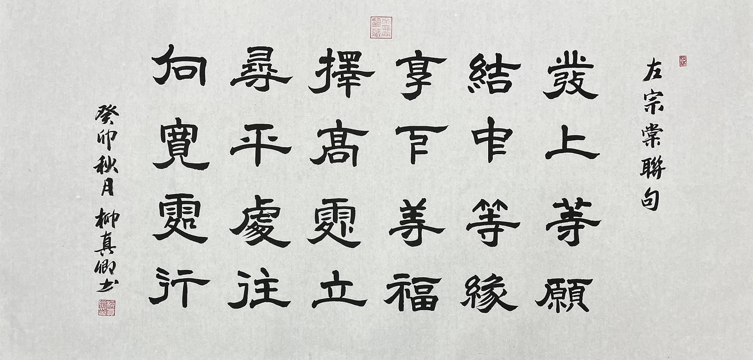 柳真卿,1948年出生于北京书画世家,字颐山,号致远山人,唐代大书法家柳公权五十代世孙,欧阳中石先生外甥,跟随舅舅欧阳先生研习书法十余年,行书深得先生之横空出世、气势磅薄、正气凛然、颜筋柳骨、碑意彰显的独特风格,师古而不泥古,传承中又有创新,柳真卿老师隶书作品 《左宗棠名句》被中国国家博物馆永久收藏。2018年,一代一路艺术委员会为柳真卿先生颁发“一代一路文化推广大使”证书,以资鼓励柳真卿先生在弘扬中华传统文化艺术方面做出的贡献。 2016年,经文化部艺术品评估委员会评定,柳真卿老师书法润格费:38000元/平方尺。