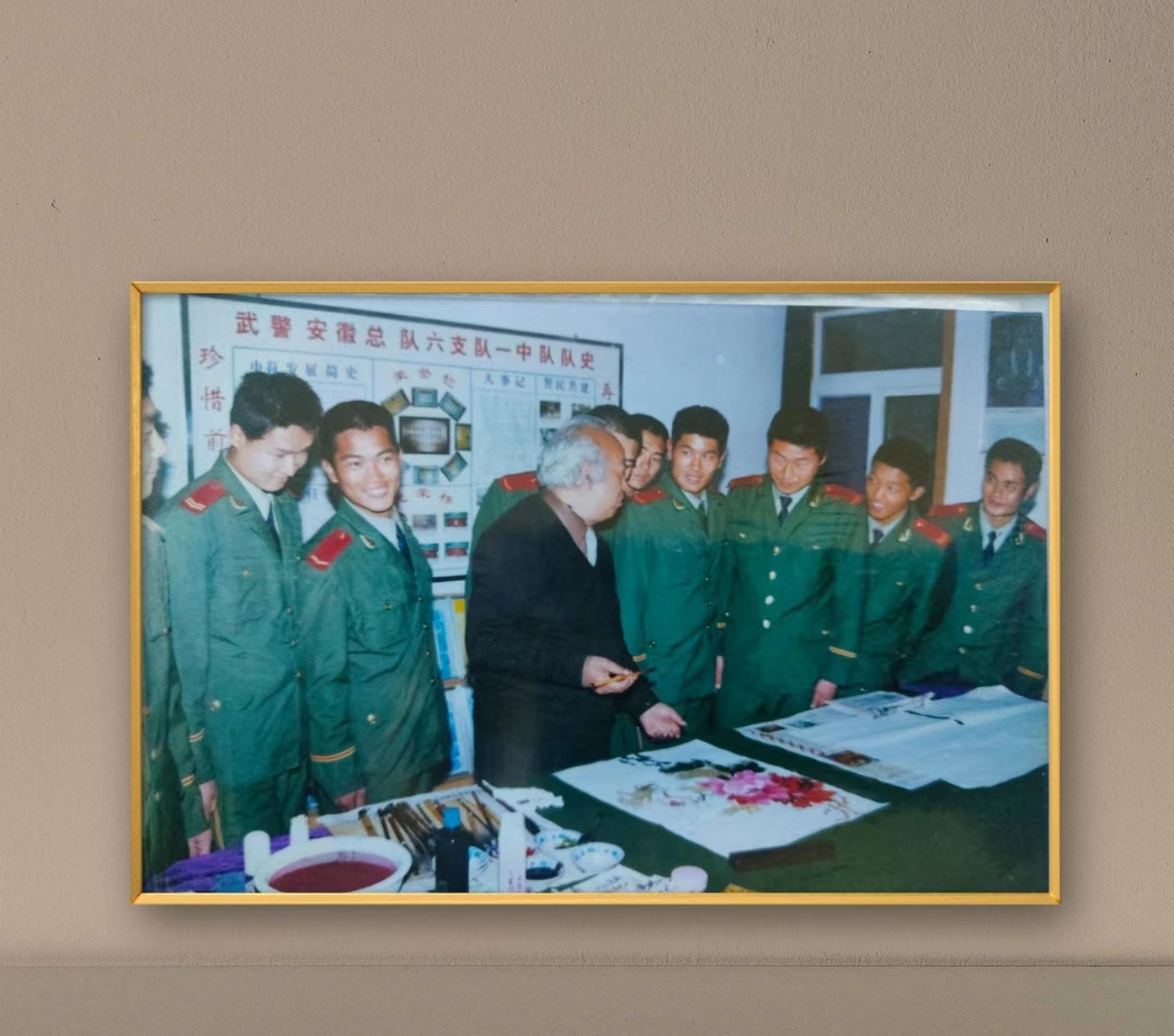 康华老师,中年时被安徽武警中队请到中队中,进行国画传播,艺术的培训。