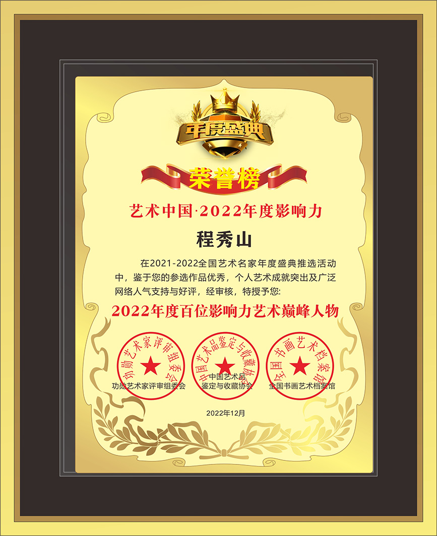 程秀山先生荣获“艺术中国·2022年度影响力”百位影响力艺术巅峰人物