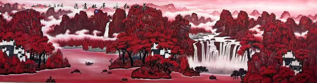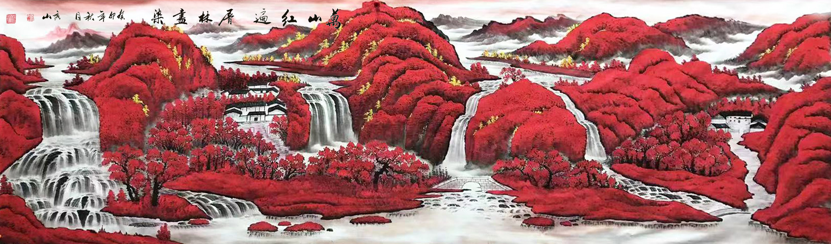 2013年 为北京人民大会堂创作巨幅山水《万山红遍》。