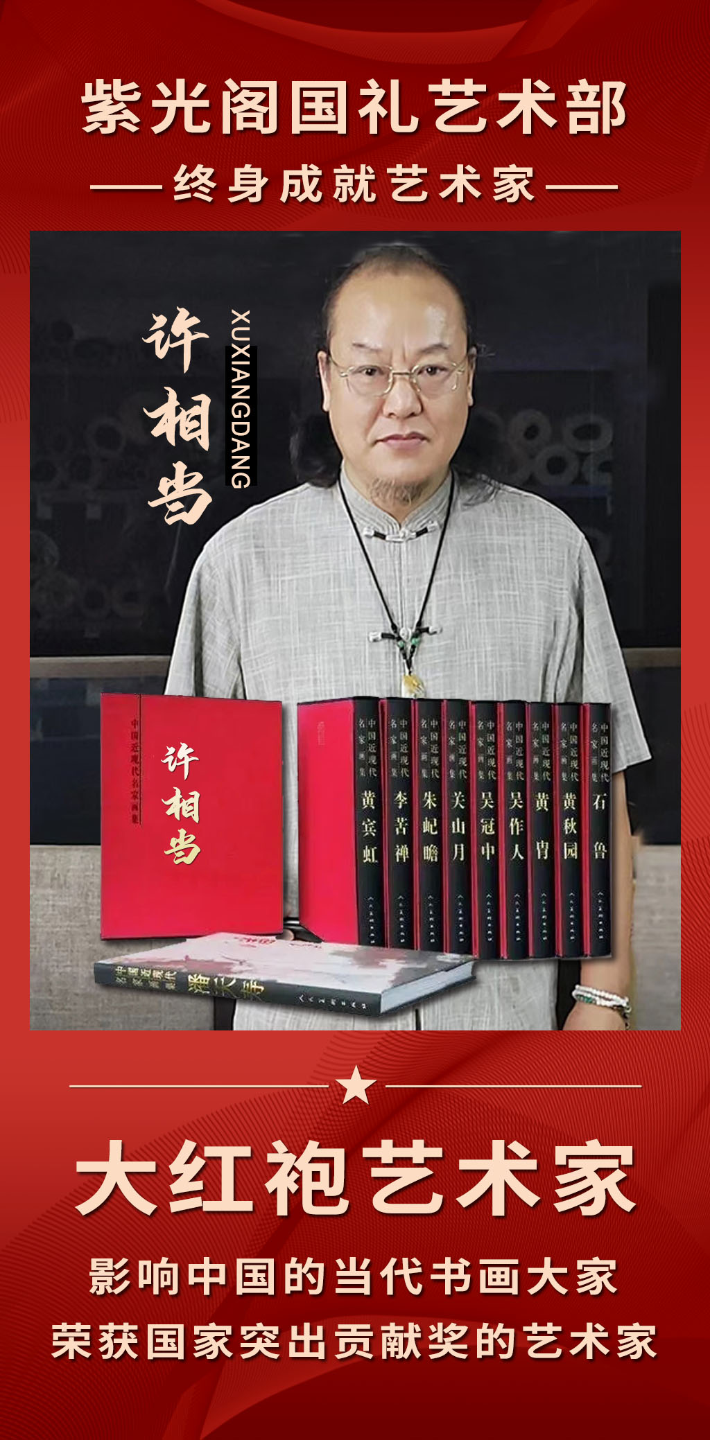 许相当,原名许向党,号墨痴堂主,又号伊滨道人,1961年出生于十三朝古都洛阳,紫光阁国礼艺术部大红袍终身成就艺术家。 先后受到高冠华、俞致贞、白雪石等名家教诲,打下基础。18岁破格入选为王雪涛关门弟子,齐白石再传弟子,其书法师承沈鹏先生,是中国现代著名写意花鸟画家,其牡丹,紫藤被誉为中国写意花鸟当代最具国粹文化特色的代表题材。