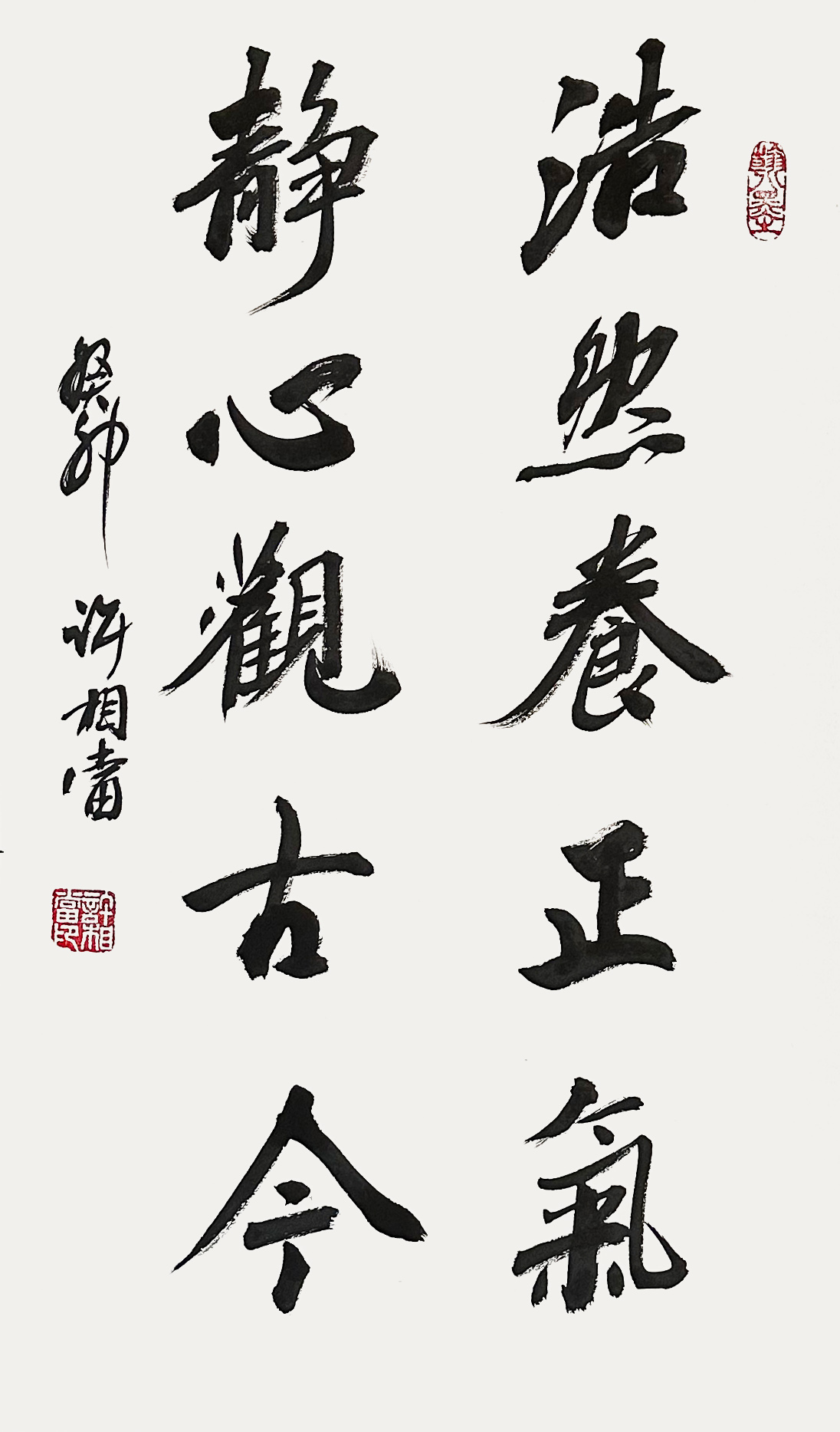 许相当先生幼染书道,数十年如一日,临池不辍,耳染目睹碑学书法的雄壮浑穆,深受家乡龙门二十品的影响,走碑帖结合路子且获得了不菲的成绩。作品以魏楷见长,字迹风神洒落,入木三分;章法疏放妍秒,天资神纵;观之情驰优游,气势贯虹,深受收藏家的喜爱!书法作品曾多次被作为“国礼”赠予外国驻华大使、商界精英和国际友人!