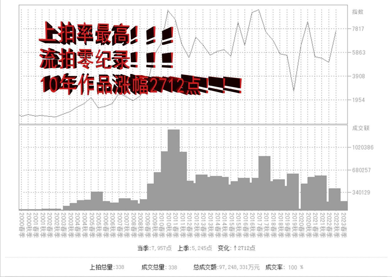 莫源老师作为保利艺术权威榜单风云人物,自2013年至2023年,连续10年持续攀升,直接成为在世国画艺术家中成交额排名第一、成交量排名第一、上拍率排名第一、零流拍、国画大师,其作品在历届拍卖中增值2712点,市场拍卖总额高达13.65亿元,堪称中国最具艺术价值和收藏价值的国画大师。