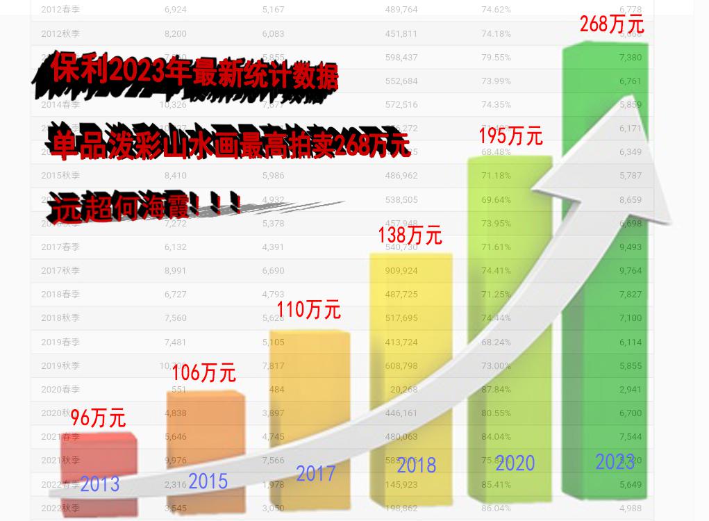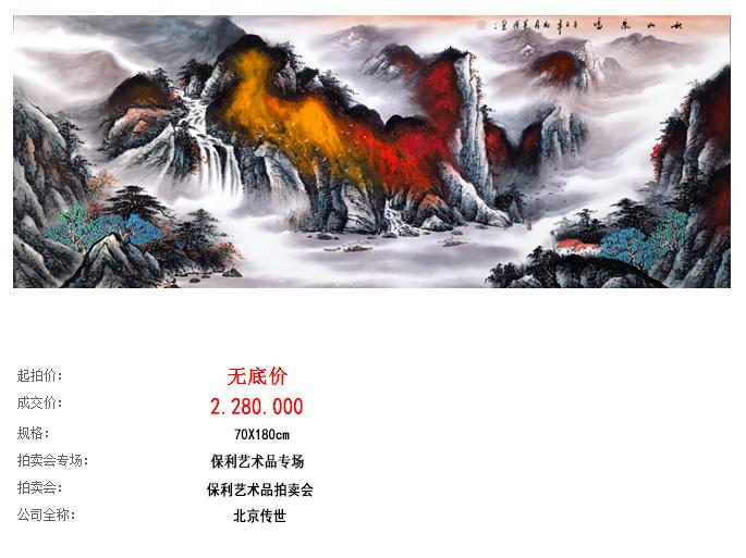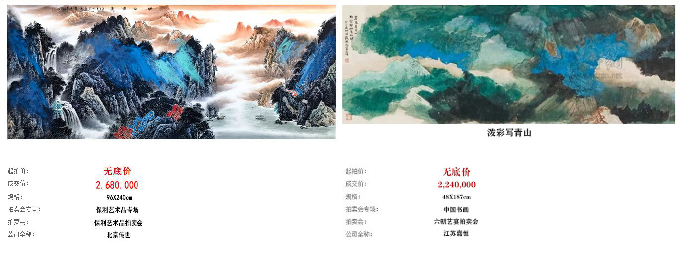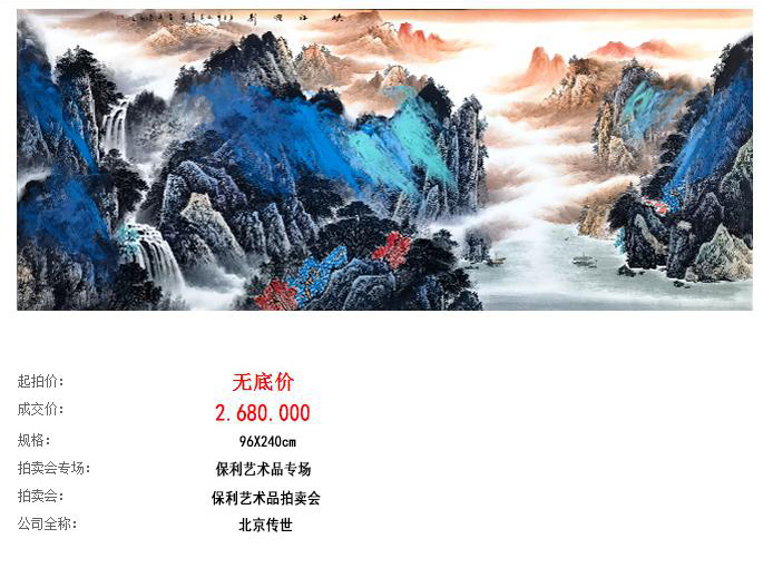 数据显示,何海霞泼彩山水《泼彩写青山》拍卖额为224万元;而其莫源先生泼彩作品拍卖竟然高达268万元。可见,莫源老师的市场认可度已经远远超越何海霞,市场价值也与日俱增!