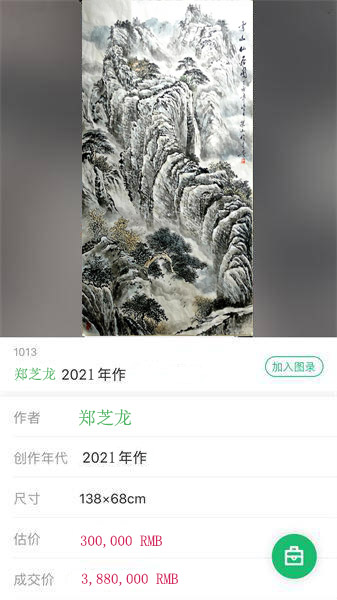 郑芝龙博士作品拍卖真实数据,在2020年至2022年分别拍出249.5万和388万以及508万的好成绩,但由郑博士特别反对自己的作品出现在艺术品拍卖市场,他秉承着“不为钱而画,要为艺献身 ”的艺术原则,他的作品从未在线下市场流通,作品稀缺,但两年的时间内,拍卖价格“暴增”250多万,从这个角度可以看出郑博士作品是极为受藏家们和大型拍卖场欢迎的!
