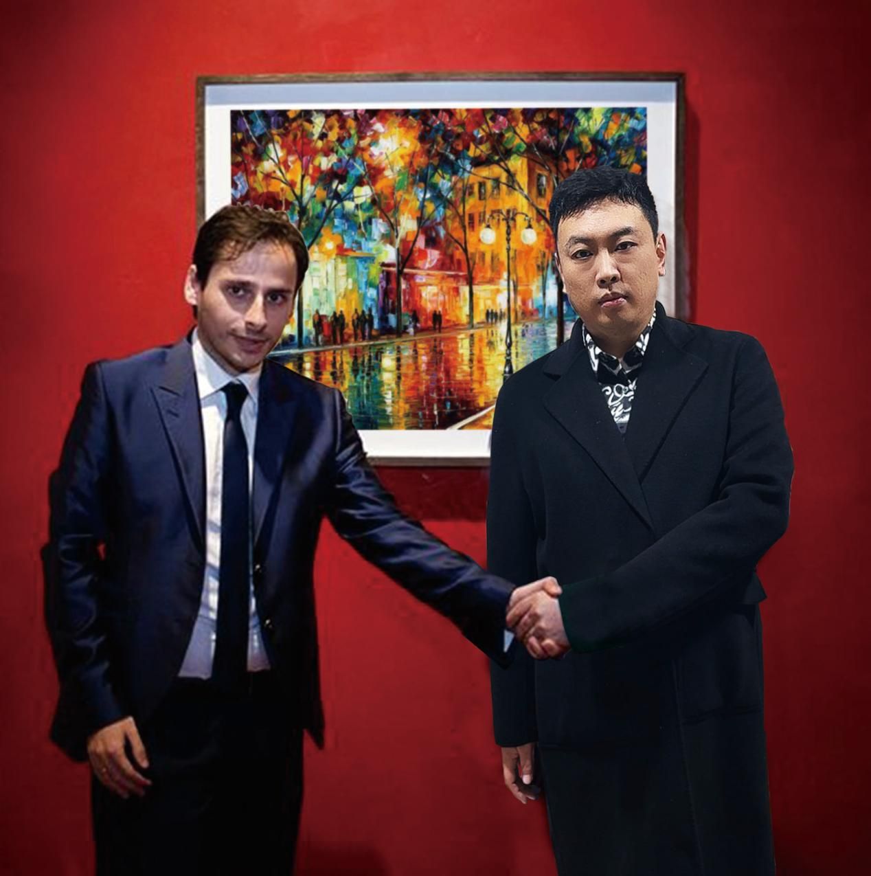 韩鸿与著名冰雪画大师于志学在英国牛津艺术学院