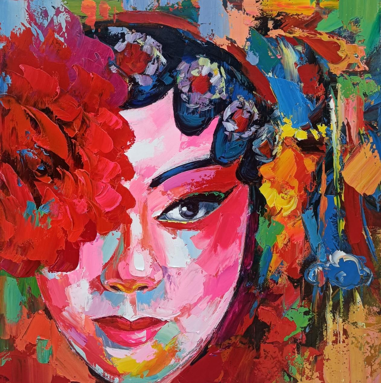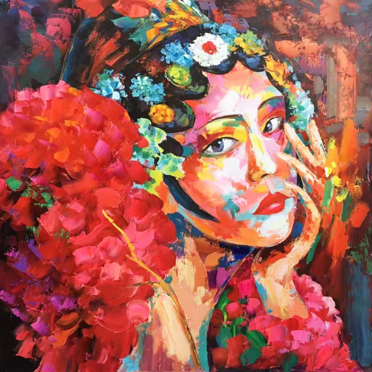 作者:韩鸿《璀璨梨园佳人》布面油画