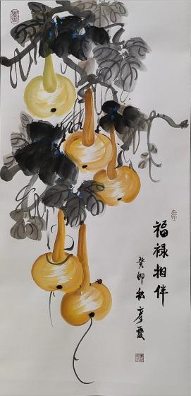 现为张大千的第三代传人(主要跟随老师学习山水 人物 花鸟画作技巧)。