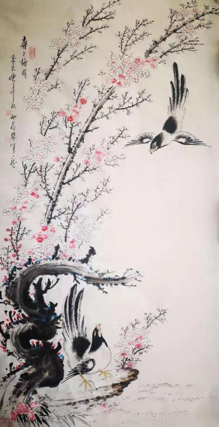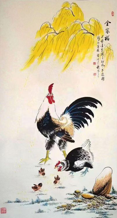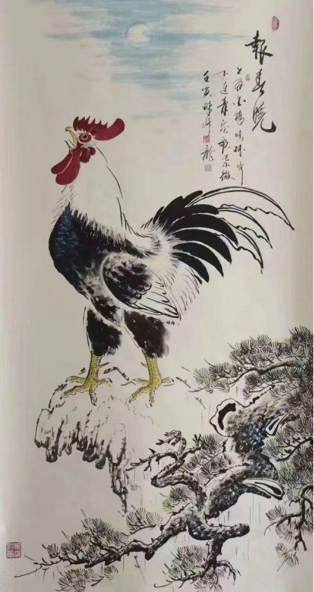 书画家孙来通画如其人,他画的《雄鸡图》就是其人生精气神的艺术镜象。在构图上展现了其高超的技巧和独特的审美眼光。运用线条、色彩和空间,使雄鸡的形象栩栩如生,跃然纸上。通过气势磅礴的描绘,将雄鸡的精气神表现得淋漓尽致。不仅准确地表现了雄鸡的外在形象,更深入地挖掘了雄鸡的内在气质。画以畅志,孙来通气概通疏,所以可以把雄鸡图画得威仪丰神!当然,让孙来通先生在艺术界大著其名的原因,更在于他可以写就金书锦字的翰墨成就。