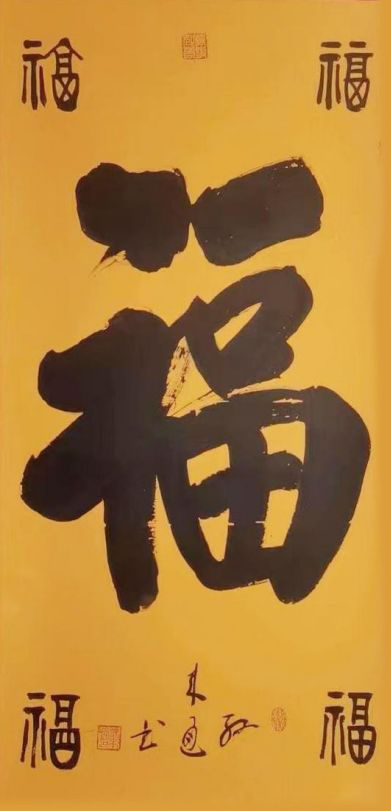 孙来通先生楷书作品非常稳健,结构严谨端正,字形美观大方。一手金书锦字既有传统的碑帖基础,又有自己的创新琢磨,楷精法详,写得特为正大气象,展现了他楷书修养的深厚功底和无比专业的艺术风格。他以颜筋柳骨写楷书,以碑帖双修作翰墨,表现出当代书法家的高水平真实力,堪为中流砥柱,勇立不世之功!其为书法的专业功底特别深厚,所以他可以执笔写榜书,成为当代书法可以装饰厅堂、机关酒店、文化地标、风景名胜的第一品牌,其榜书作为艺术与文化中流砥柱,在全国各地都有墨宝展现,从《上海滩》写到《九龙港》,从《风凌渡》写到《丽景门》又有《河南形象》亦有《康百万庄园》,这些榜书大字,可以喜托龙门,可以叩击山河,成为孙来通用书法、用榜书装点中华文化圣景的点睛之笔,也是弘扬书法文化,表现东方审美精气神的和璧隋珠。