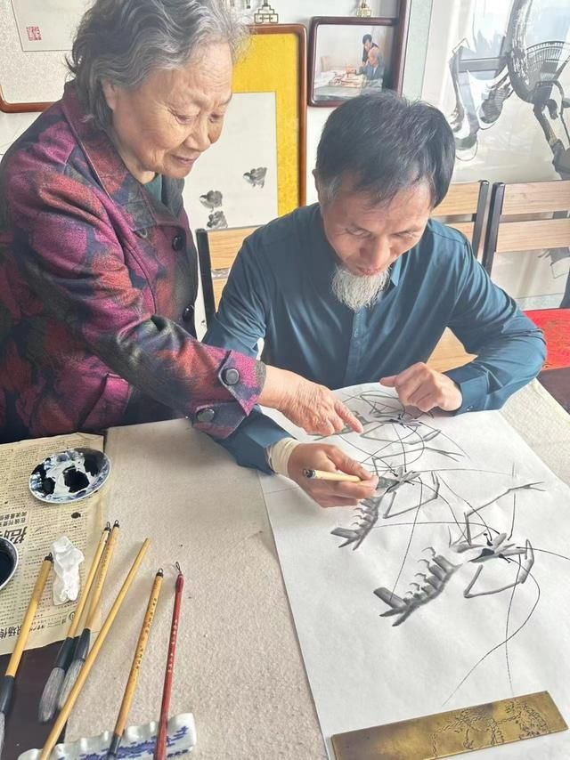 王跃虎(冰如)与恩师齐丽霞在家中学习留念