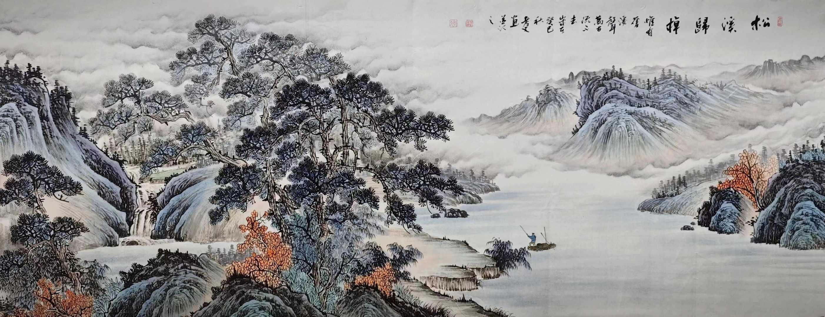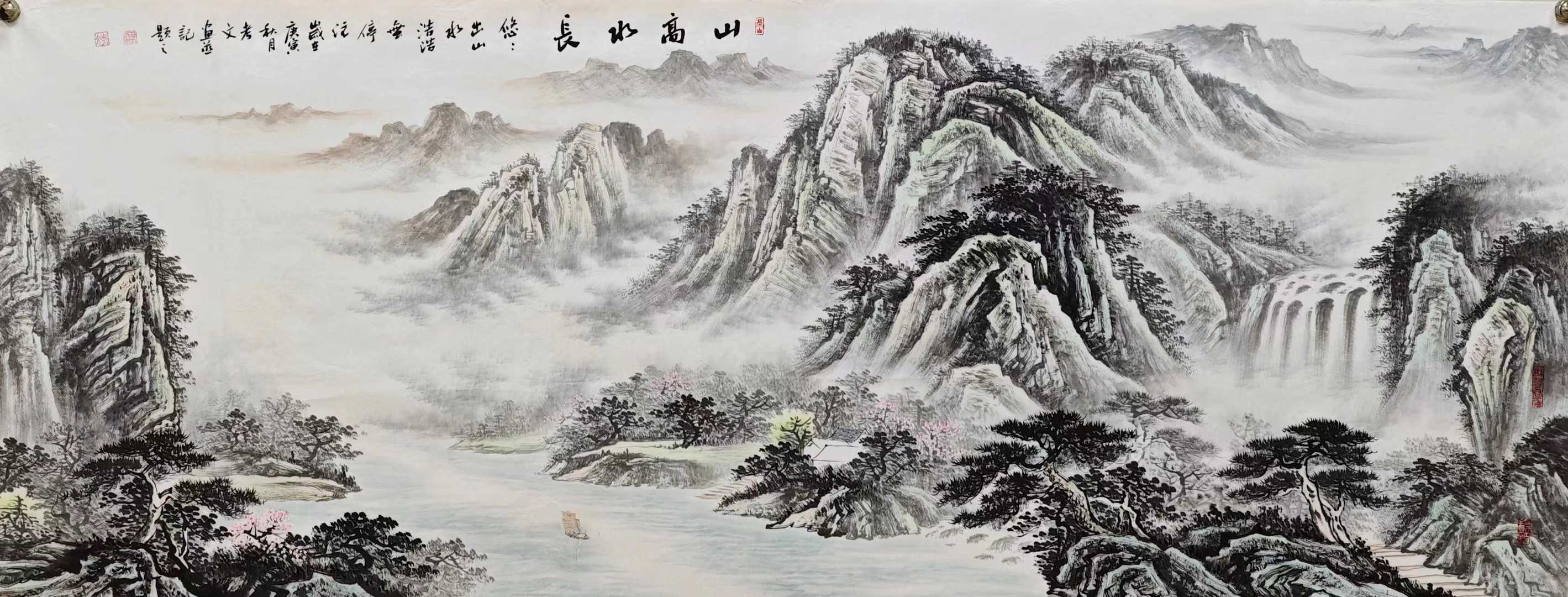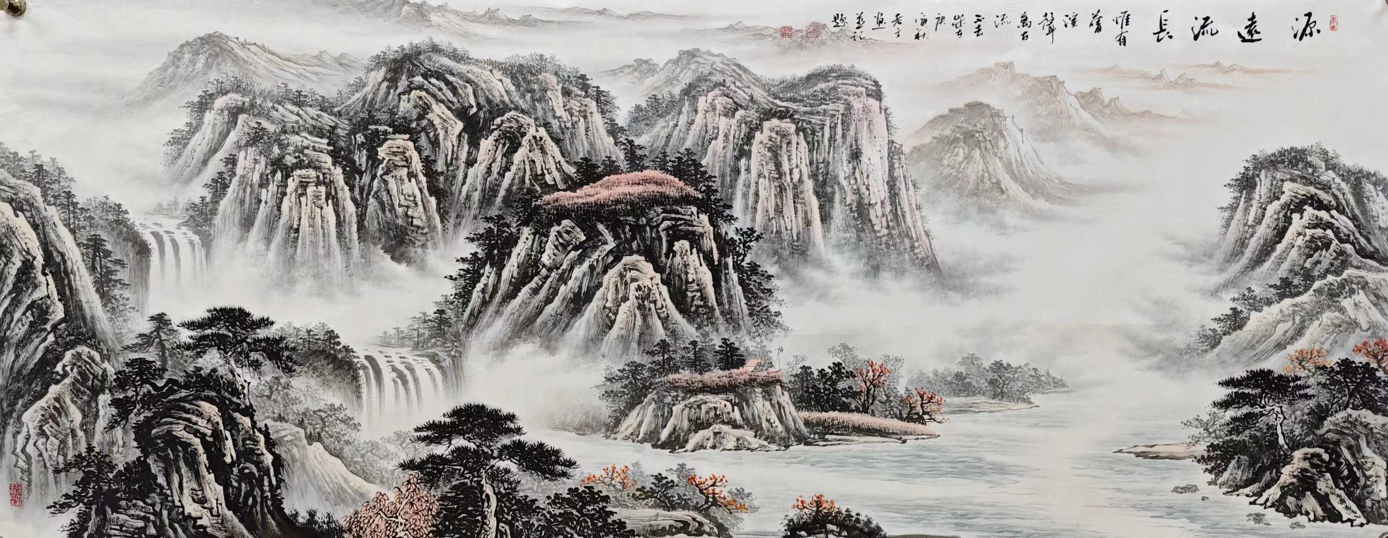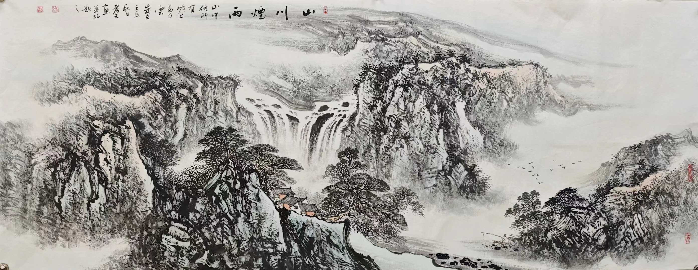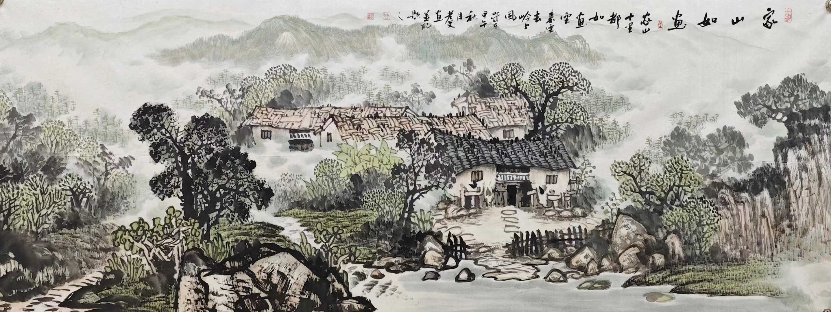 他的山水画,从整体上看,无疑是深深扎根于中国传统文化的。他笔下的山水,无论是构图、色彩还是笔触,都充满了中国画的独特魅力。他巧妙地运用墨色,通过浓淡干湿的变化,展现出山水的层次感和空间感。同时,他运用线条的技巧也十分娴熟,勾勒出的山石树木,栩栩如生,充满生机。