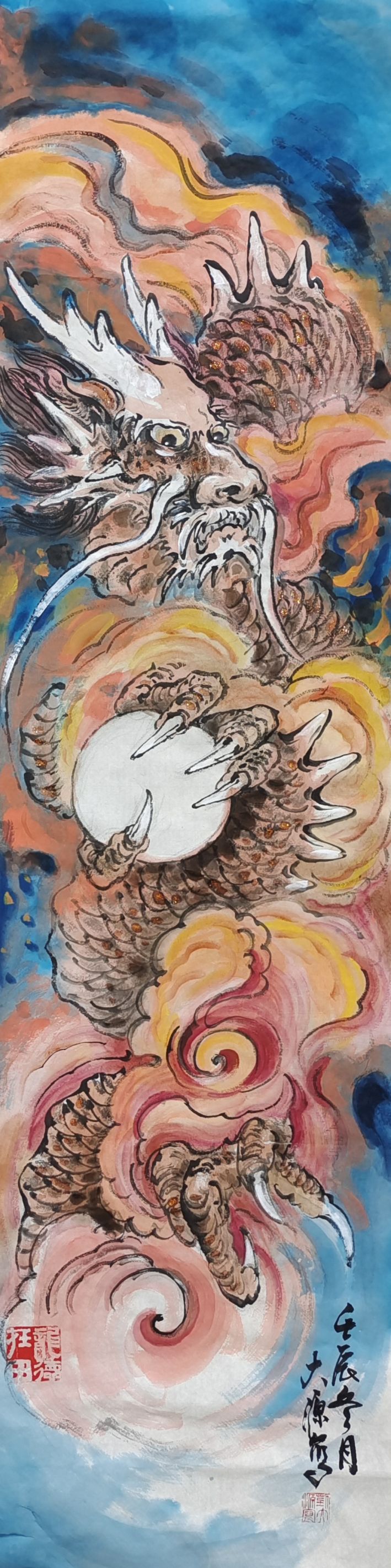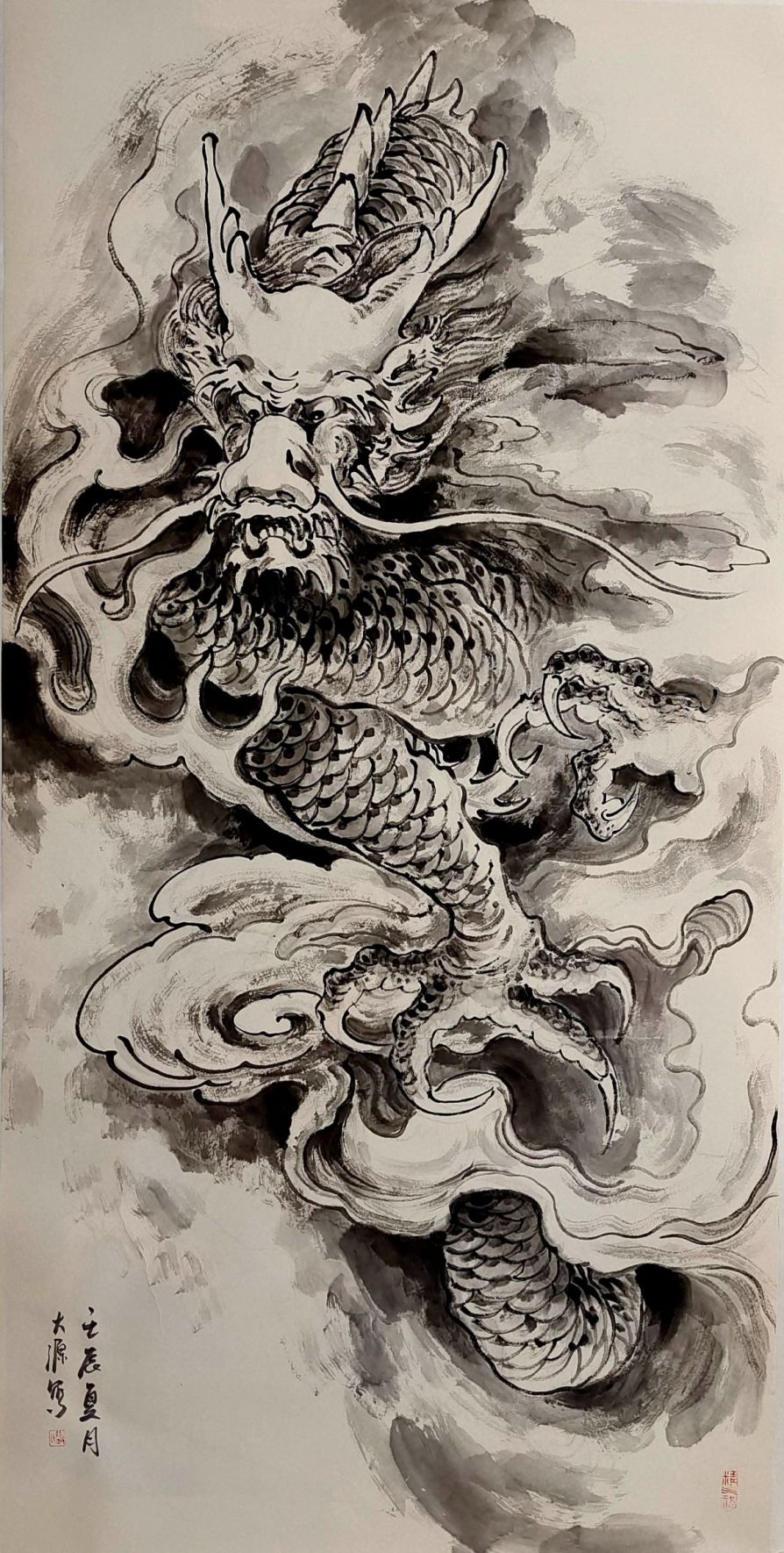 刘大源出身书香门第,祖上几朝为官。幼承家训学习国画及中国传统吉祥纹饰。刘大源幼时就开始画龙,各个朝代的龙纹饰融会贯通,形成自己的独有的画龙风格。无论是龙的各种表情、身体结构、场景、风雨雷电无不有着自己独特的绘画语言。画出龙的传奇精气神!近些年来收藏界有齐白石的虾、徐悲鸿的马、黄胄的驴、李苦禅的鹰、刘大源的龙的盛誉!被誉为古有陈荣今有刘大源,被称为中国当代画龙第一人!