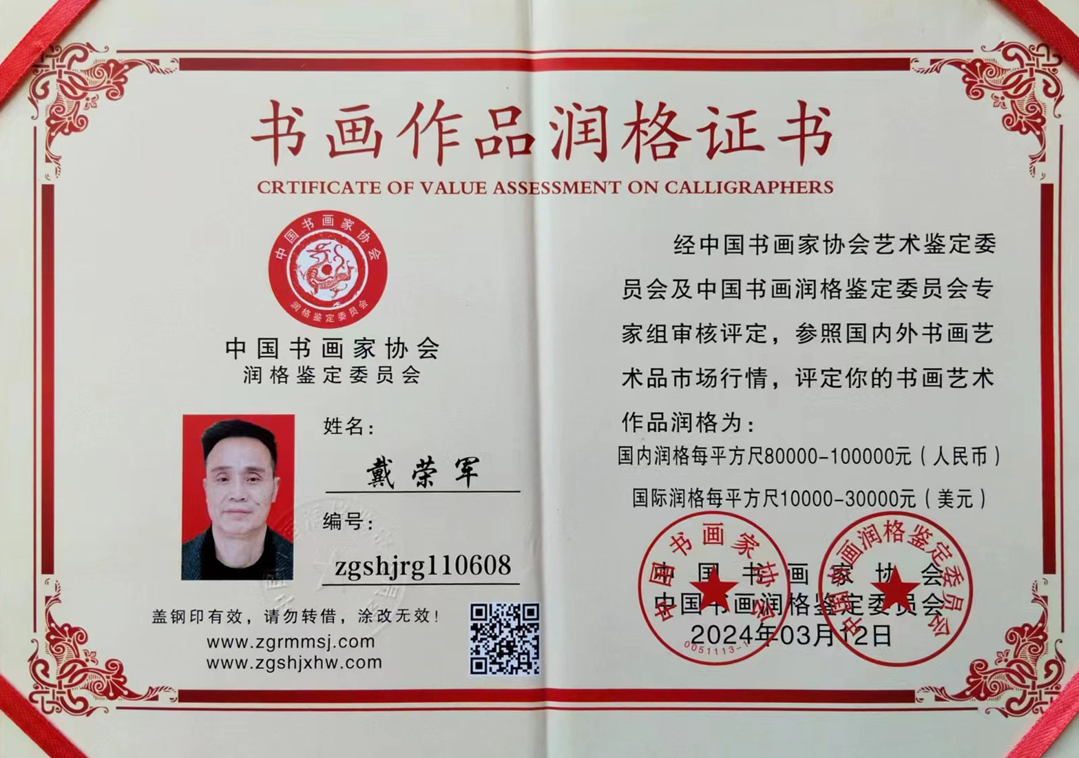 虽然戴荣军先生的书法道路上历经了许多的磨难,但他始终相信自己的选择是正确的。随着当下生活观念的逐渐转变,他凭借着对艺术的虔诚,对书画艺术真谛的渴望以及历年累月对古贤精典的不断研习和揣摩,始终怀揣着一颗赤子之心,我们坚信他定将会在书画的天地中走出一条属于自己的金光大道。