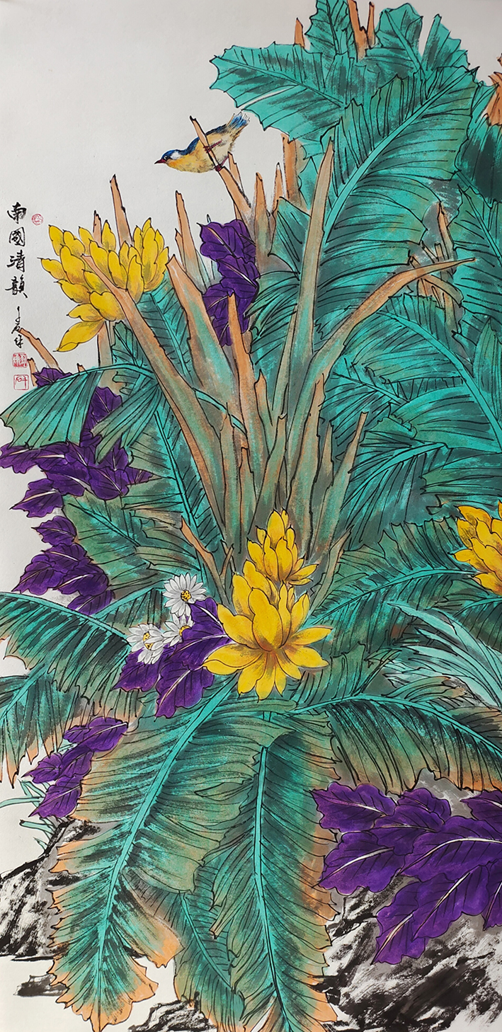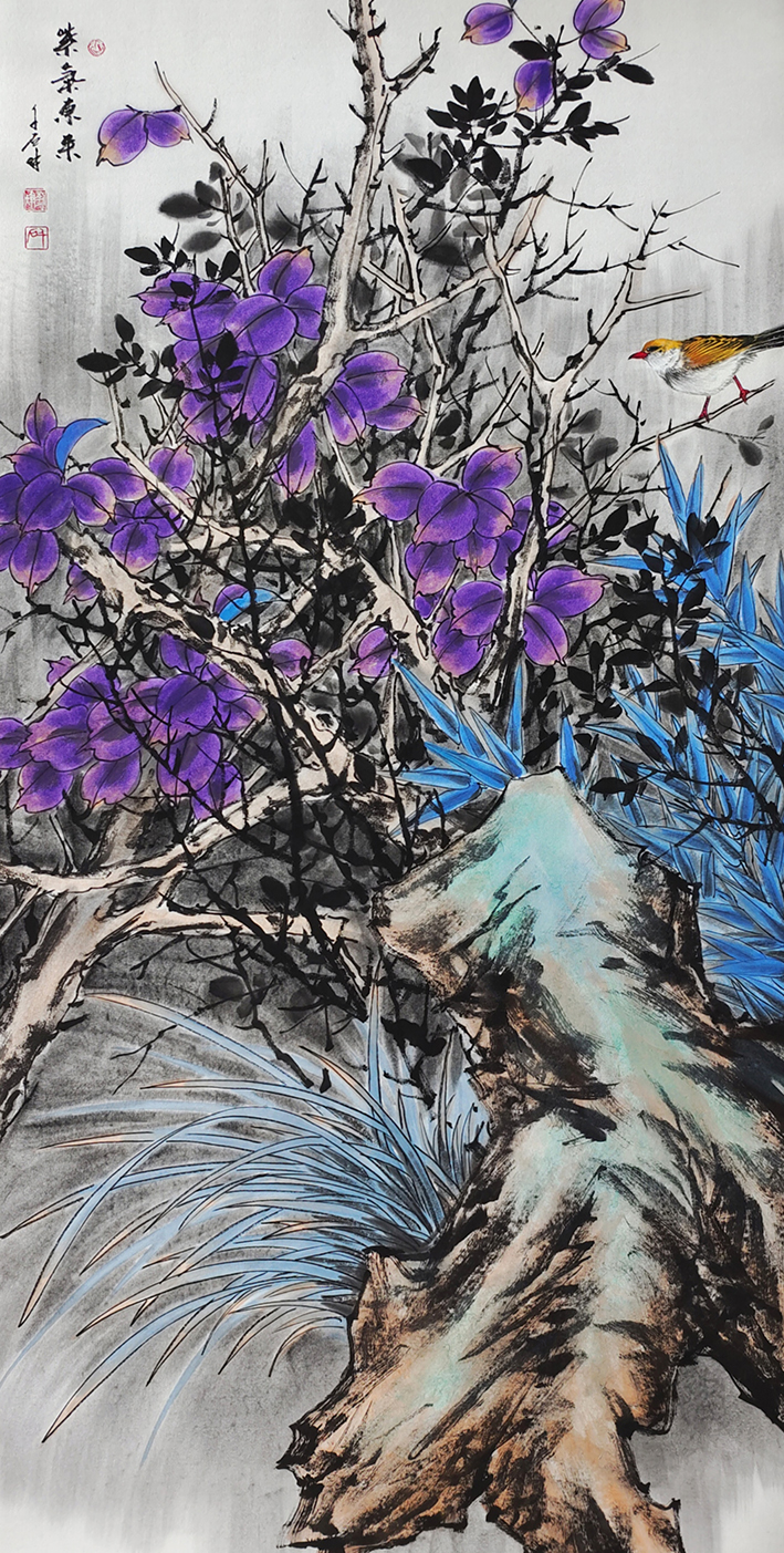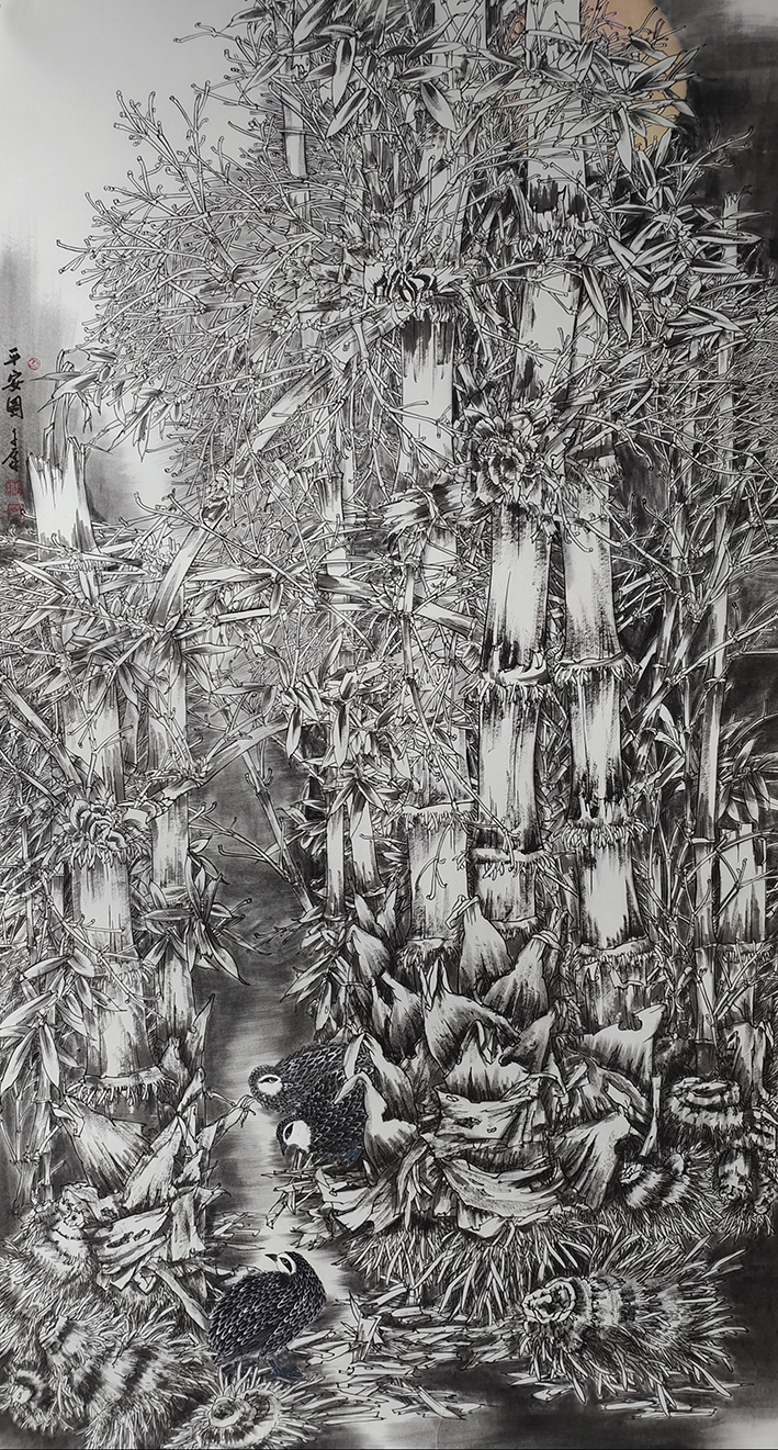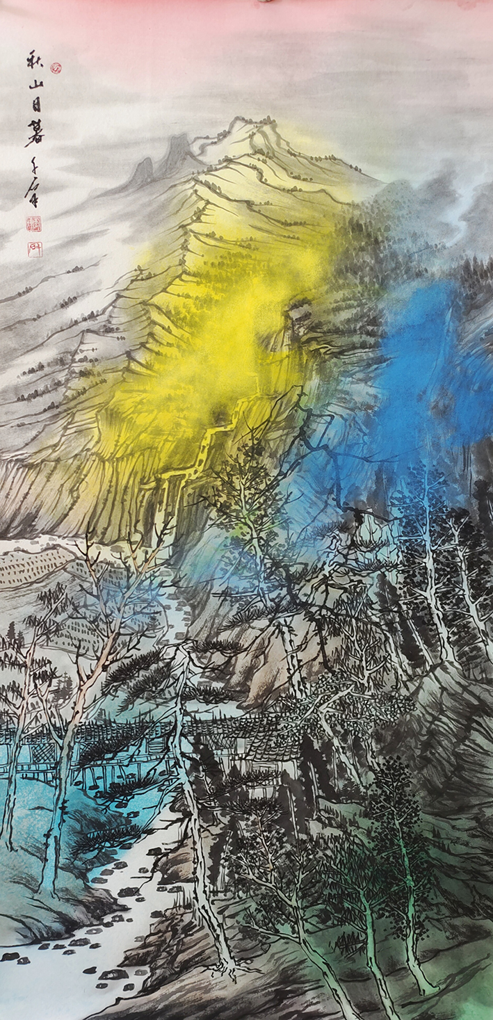 2023年为中南海紫光阁创作巨幅作品《春雨晚来秋》,并被收藏;