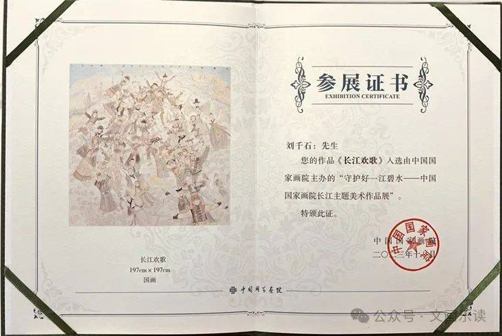2023年国画作品《长江欢歌》入选中国国家画院主办的长江主题美术作品展;