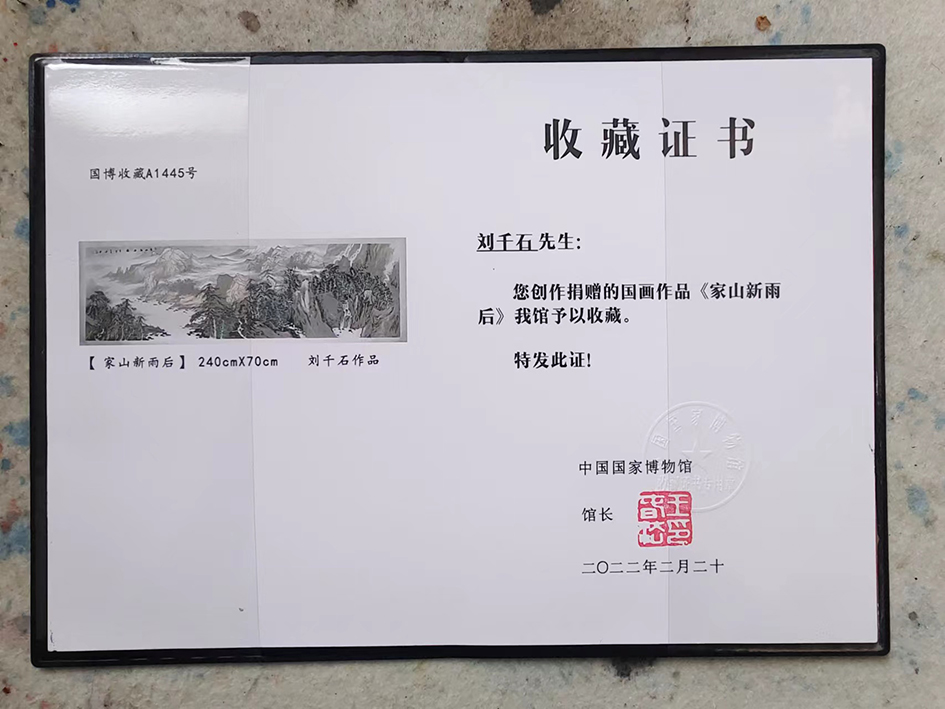 2022年作品《家山新雨后》被中国国家博物馆收藏,并颁发收藏证书;