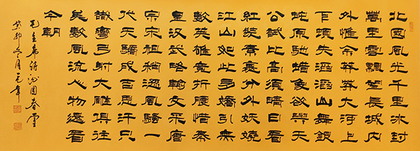 书法方面李申学先生,四体皆能,以隶书、行草为最著。其作品以行草飞动圆劲的笔触,写庄重醇厚之体,形成了独具个性的草隶,为书界所公认。国画方面其作品,据诗立意,诗即是画,画即是诗。线条疏秀流畅,刚柔相济。云水为其绝诣,有雄秀跌宕之概。烟波浩淼,云蒸雾霭,变化无穷。