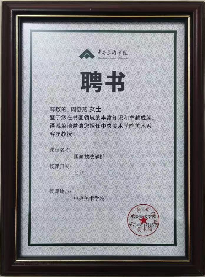 2023年11月被中央美术学院聘为书画系客座教授。