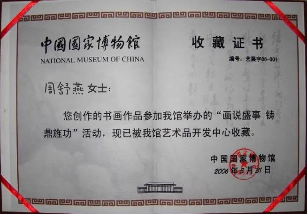 2006年3月参加中国国家博物馆“话说盛世,铸鼎旌功”艺术展,作品被博物馆收藏。