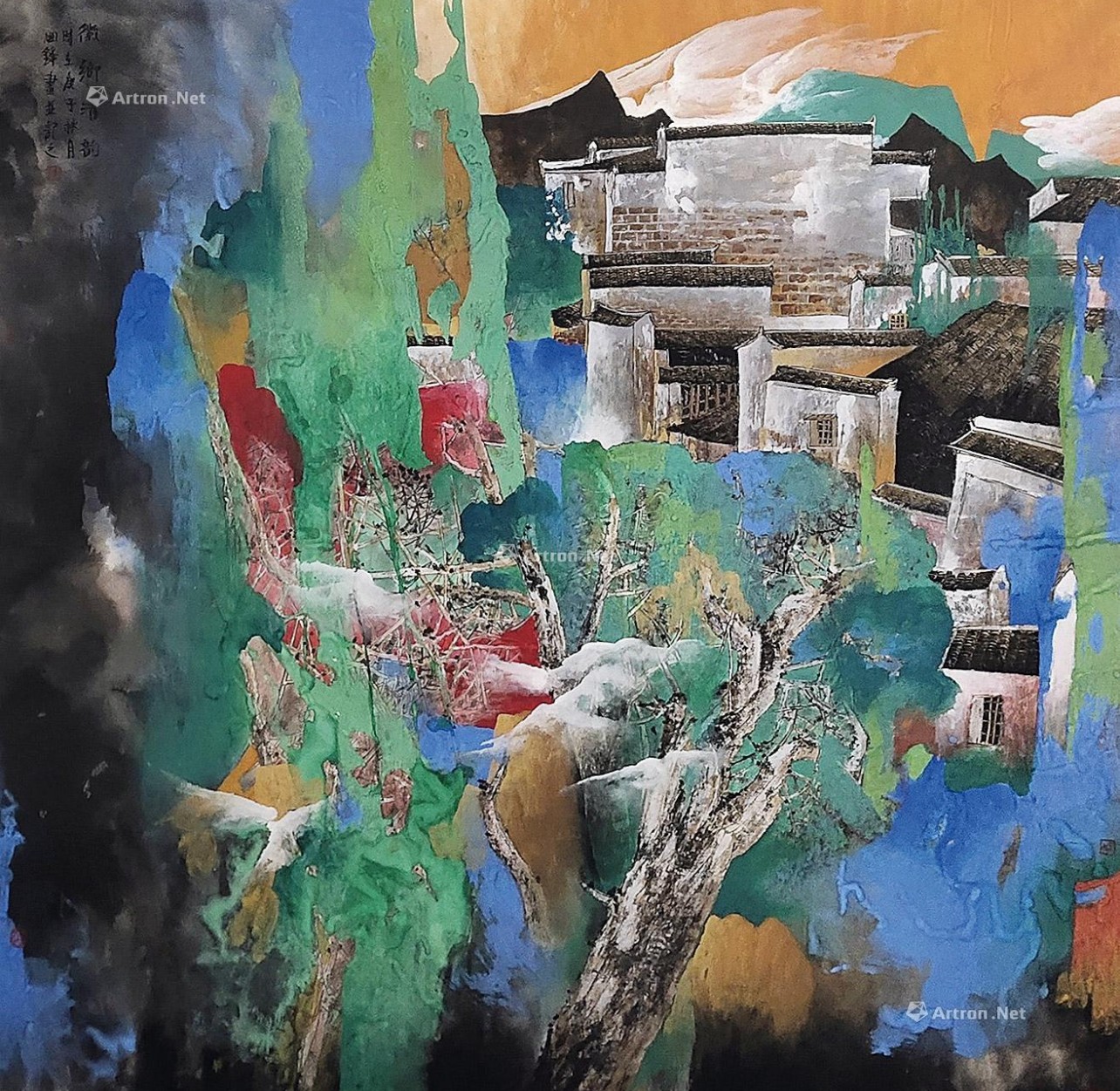 在他的画作中,传统山水画的意境与现代艺术的张力并存。厚重的色彩层次、流动的笔触、开阔的构图,共同营造出一种既传统又前卫的艺术语言。每一幅作品都仿佛在讲述一个关于中国文化、自然与精神的深刻故事。