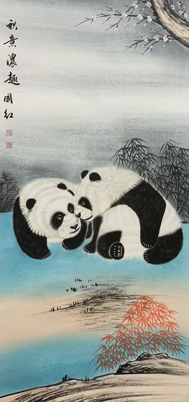 始终秉持“让中国文化符号亲善世界”的观点和情怀,通过工笔和写意的笔墨,让大熊猫形象“萌起来”、“动起来”、“乐起来”。