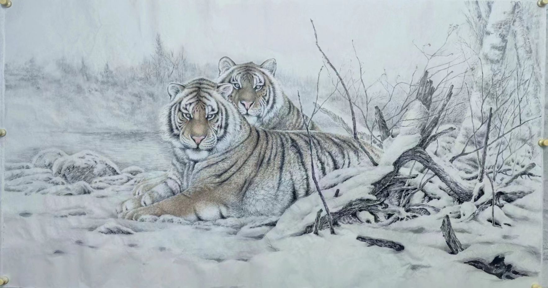 张寒月画家的鸟画主要以花卉、动物为表现对象,追求形态、结构、色彩等方面的真实性,同时注重作品神韵与生命力的表现、以及表达自己的精神世界,达到情景交融、物我合一的艺术境界,体现中国艺术特有的“写意”与“写实”相结合;其山水画追求意境的营造和表达,以笔法为主导,充分发挥墨法的功能,取得“水晕墨章”、“如兼五彩”的艺术效果,同时强调墨色的变化和韵味,追求画面的意境和深度;其人物画工笔重彩强调色彩的丰富和细腻,通过层层渲染和精细勾勒来展现人物的细节和质感,同时注重形态、结构、比例等方面的准确性和真实性,追求人物神韵和气质的传神表达,将人物形象刻画得栩栩如生、呼之欲出。
