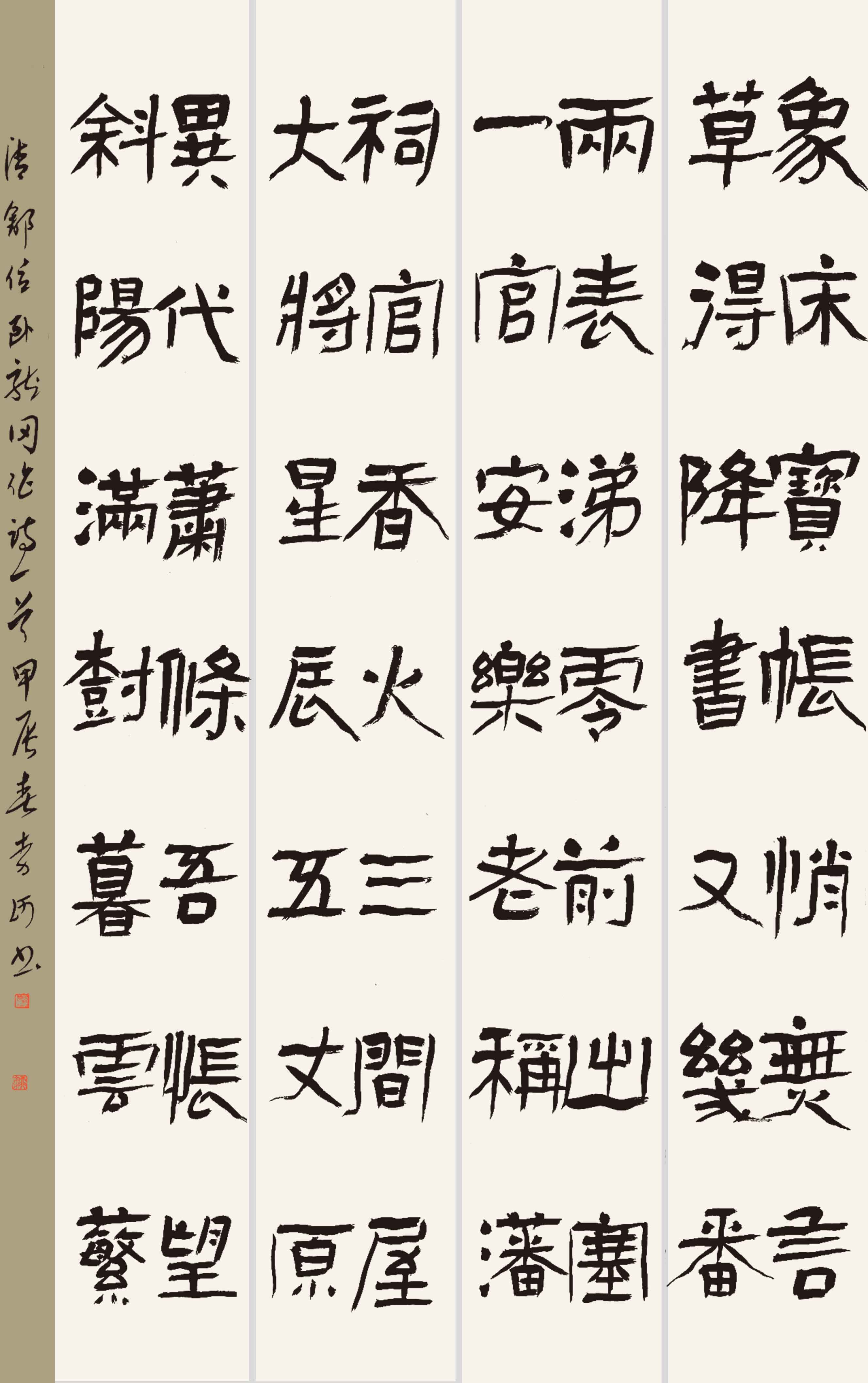 康保人,定居武汉,号塞北村野。曾在部队服役从事军队电影放映工作16年,解放军原总装备部美术书法研究院创作员、《书法报·书画天地》编辑。中国书法家协会会员、中国楹联学会会员、弘堂书社副秘书长、