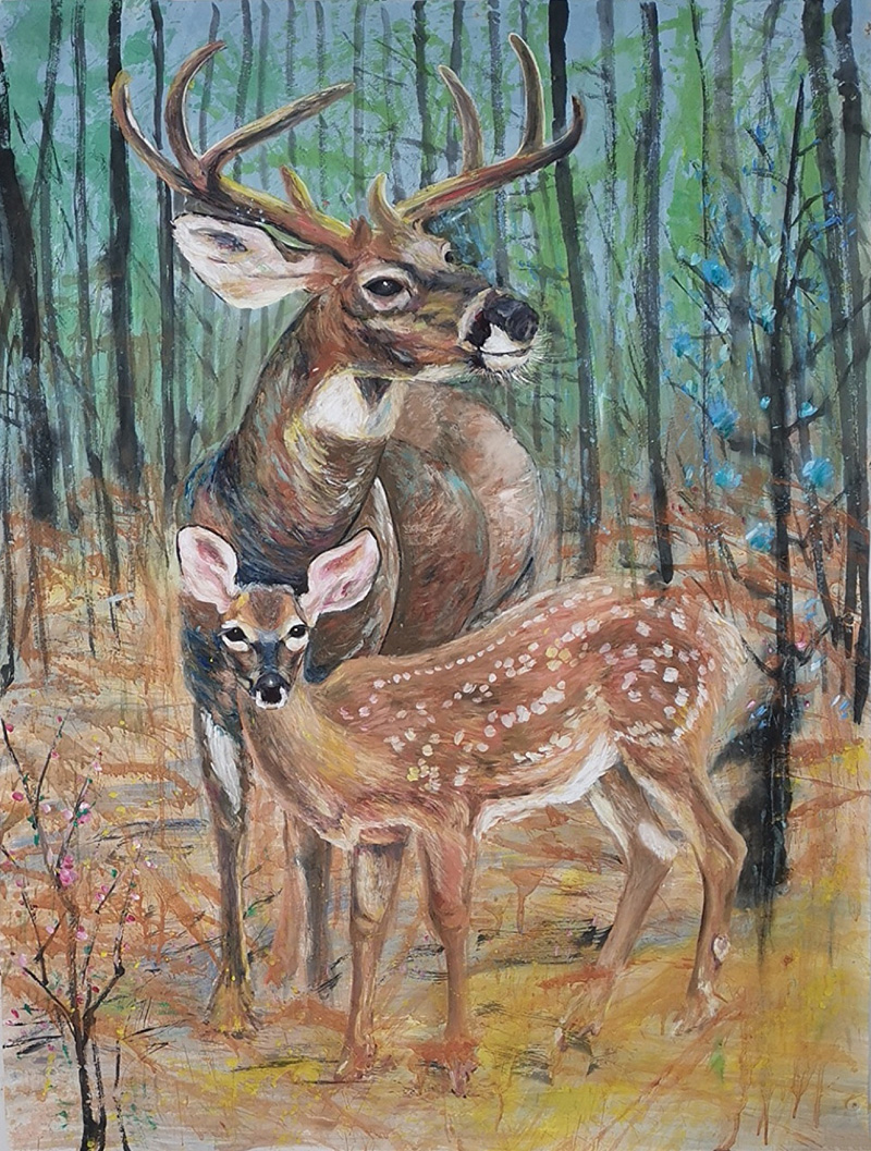 擅长中国画。人物、动物、山水、花鸟皆精。