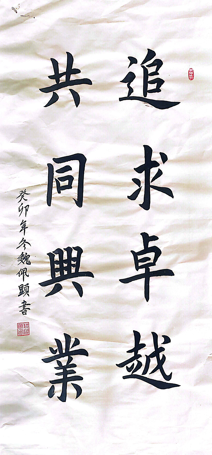 除了在书法领域的成就外,魏佩显还是一位资深的工程师。他拥有高级工程师的职称,具备丰富的工程实践经验。他善于运用创新思维解决工程难题,其设计理念独特,深受业内人士的赞誉。在业余时间,他也会将工程领域的思维运用到书法创作中,使得他的书法作品更具现代感,给人以耳目一新的感觉。