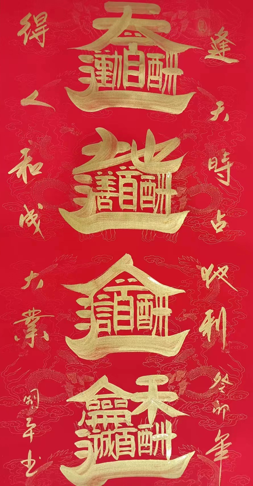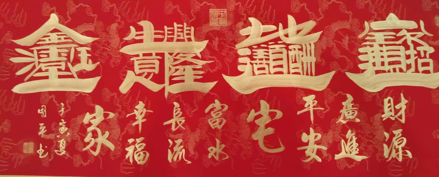 2016组合字<宝地生金》荣获国家书画创作特等奖,同年被国家世博会永久收藏,在上海国际拍卖会上以38万落锤成交,并做为国礼赠送给国际友人,。
