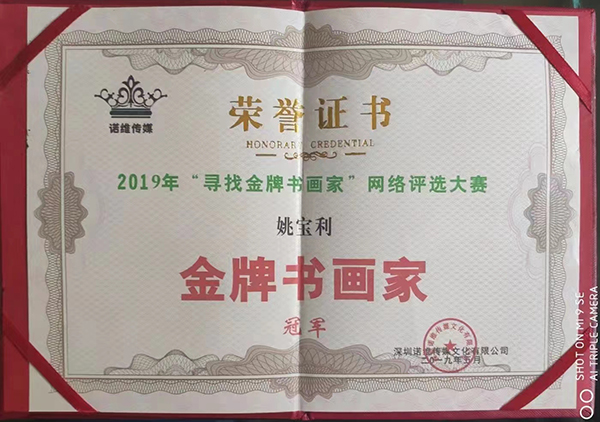 2019年5月 网络大赛中 获得《金牌画家》冠军奖 并颁发奖杯和证书;
