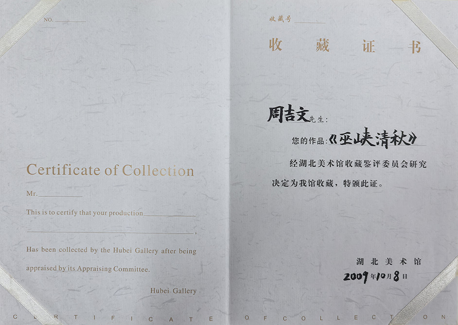 2009年,作品《巫峡清秋》由湖北美术馆收藏。10月,由首都国庆