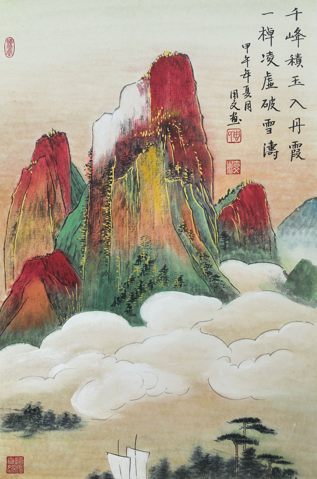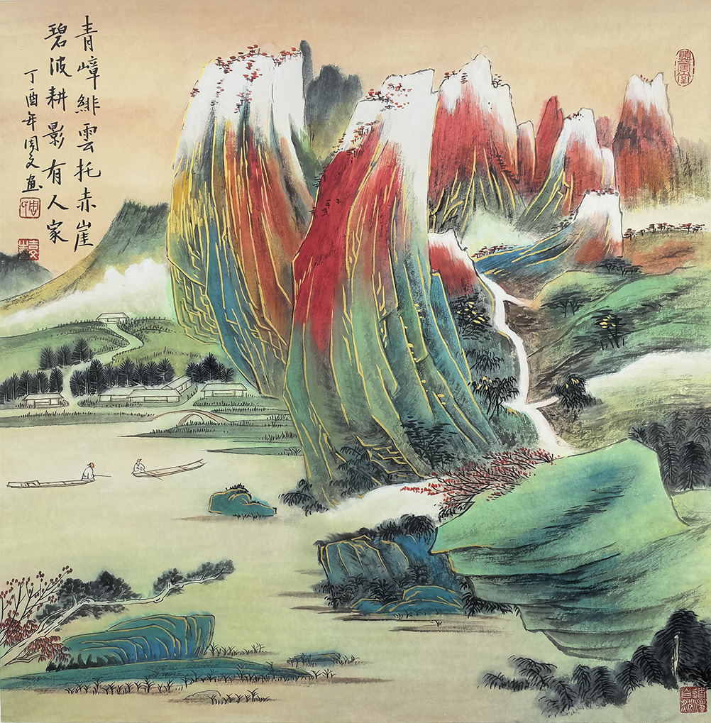 周吉文老师作品深受张大千先生的影响。在继承大千一脉的风采之上,又融合个人风格与时代特色,形成独具一格的画风!